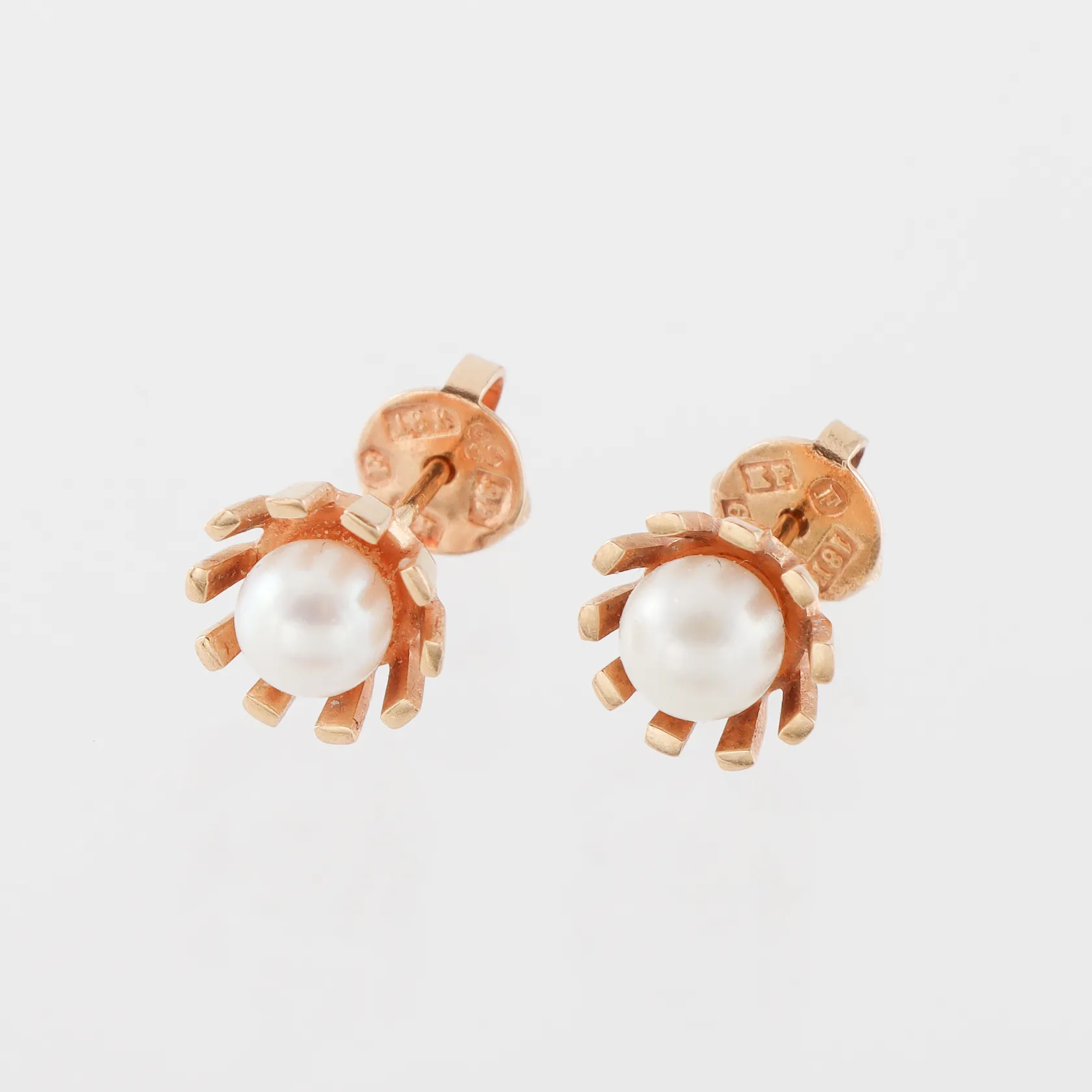 Parörhängen med pärlor 18k, diameter pärla ca 4,9mm och total diameter ca 8 mm Vikt: 2,3 g.