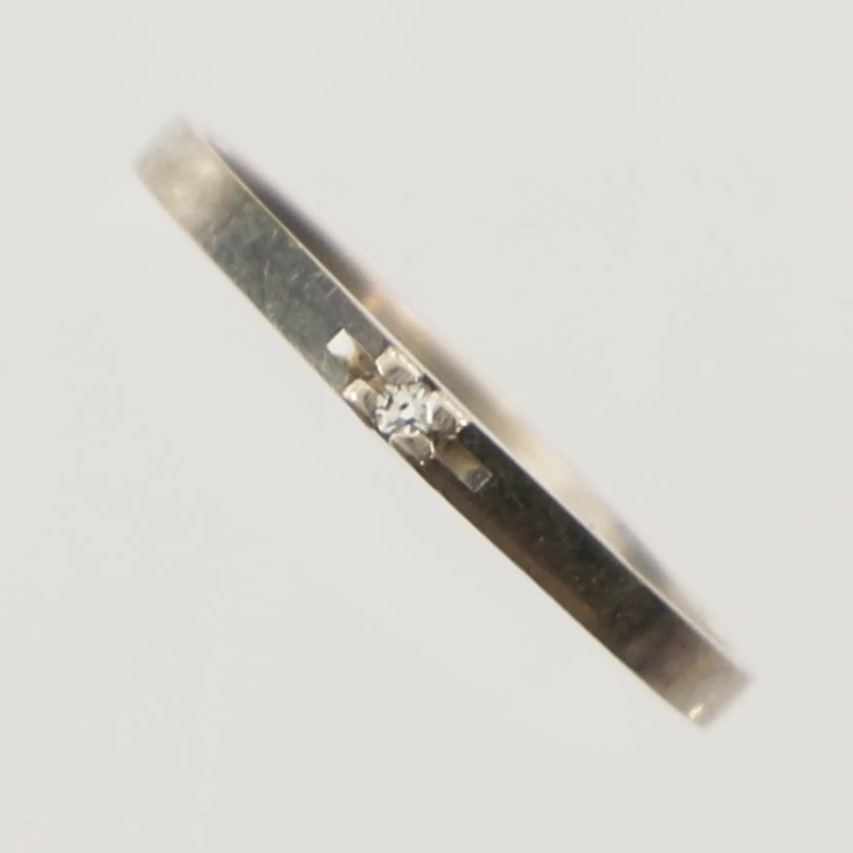 Ring med diamant ca 0,01ct, stl 15¼, bredd 1,5mm, vitguld, 18K Vikt: 1 g.
