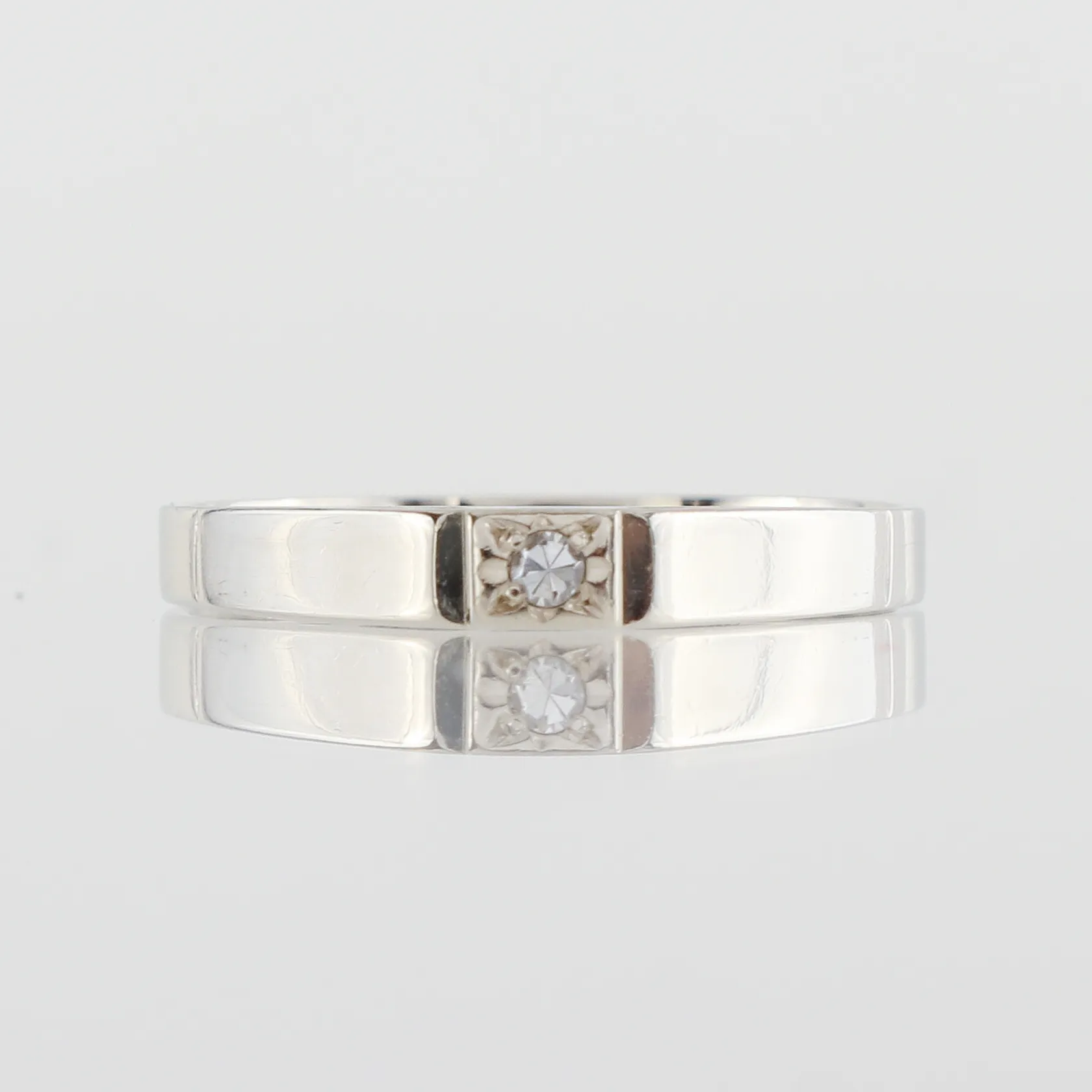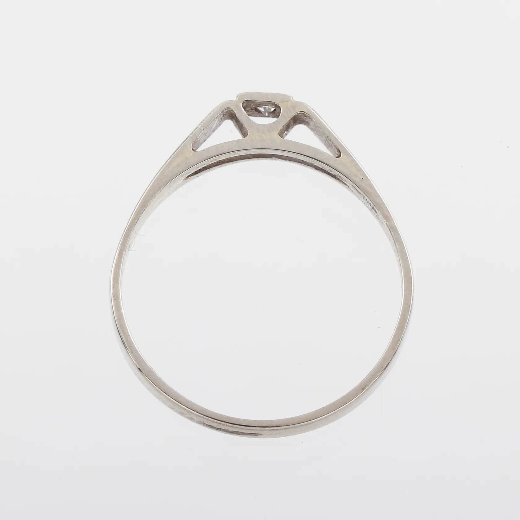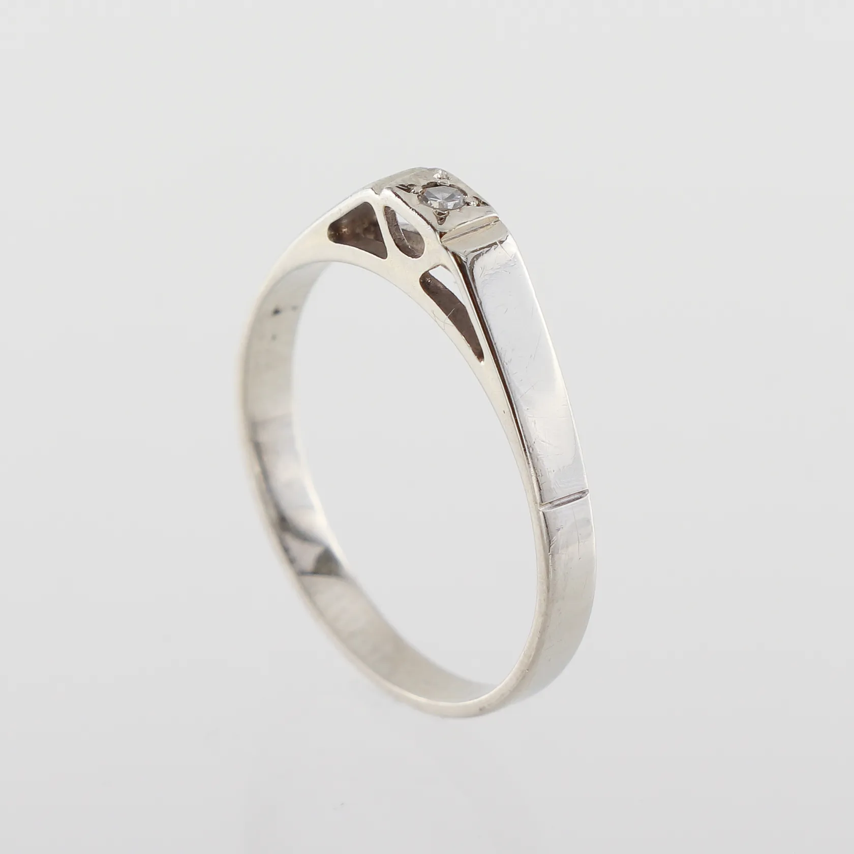 Ring vitguld med diamant på 0.02 ct, storlek 15 ¾ mm, bredd 2.1-2.6 mm, 18k. Vikt: 1,6 g.