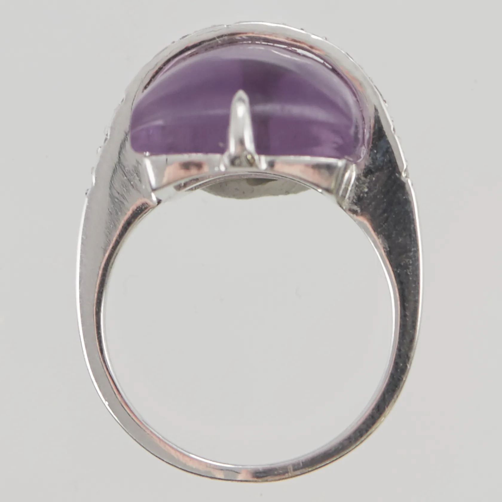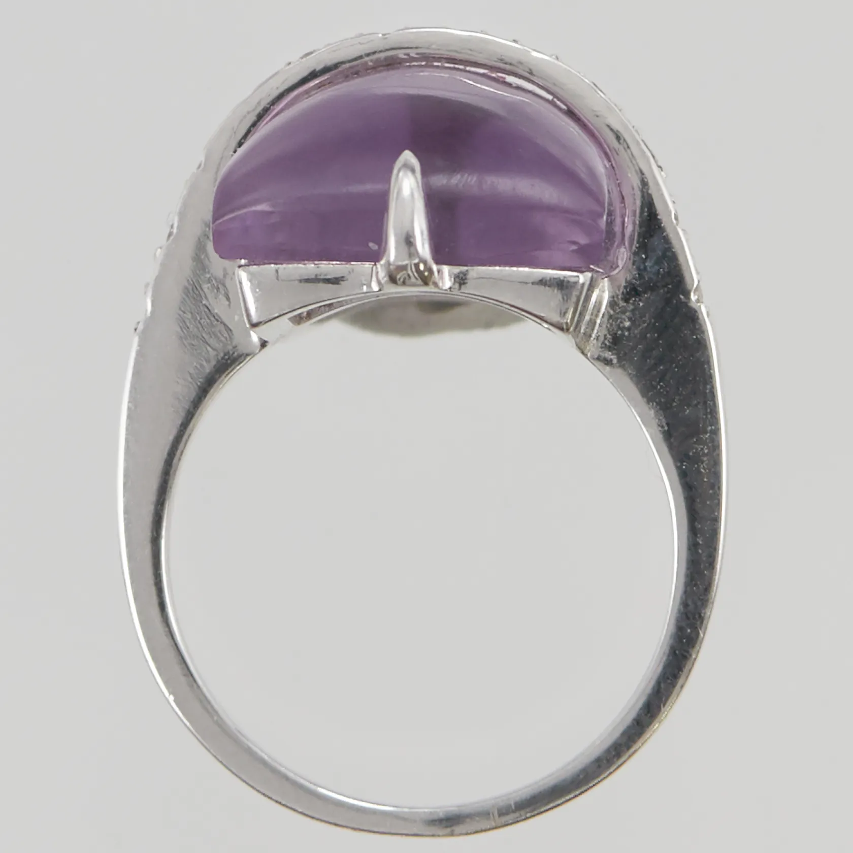 Ring, ametist samt diamanter 12 x ca. 0,005ct, Ø17, bredd: 1,5-20mm, vitguld, 18K, 7,8g. Vikt: 7,8 g.