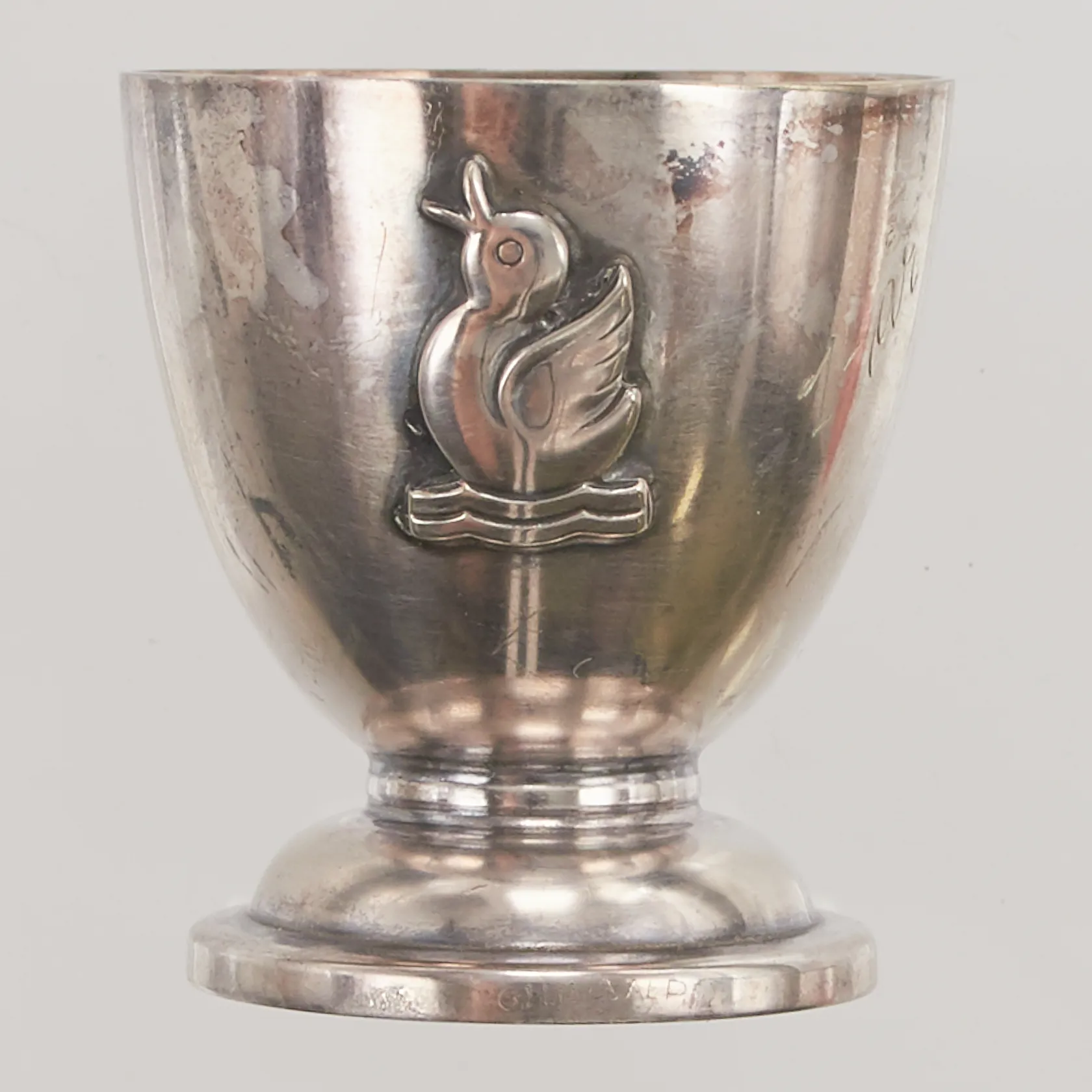 Äggkopp, anka, höjd 4,5cm, gravyr, nysilver