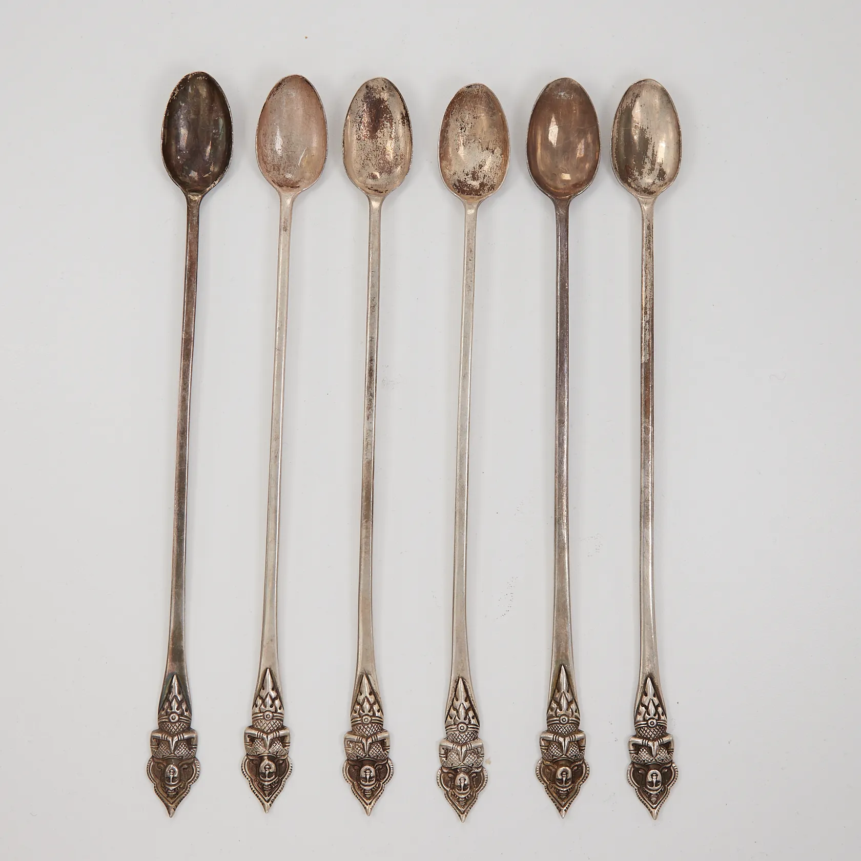 Drinkskedar, 6st, ca 21cm, Alex&co, Bangkok, Sterlingsilver Vikt: 132,9 g.