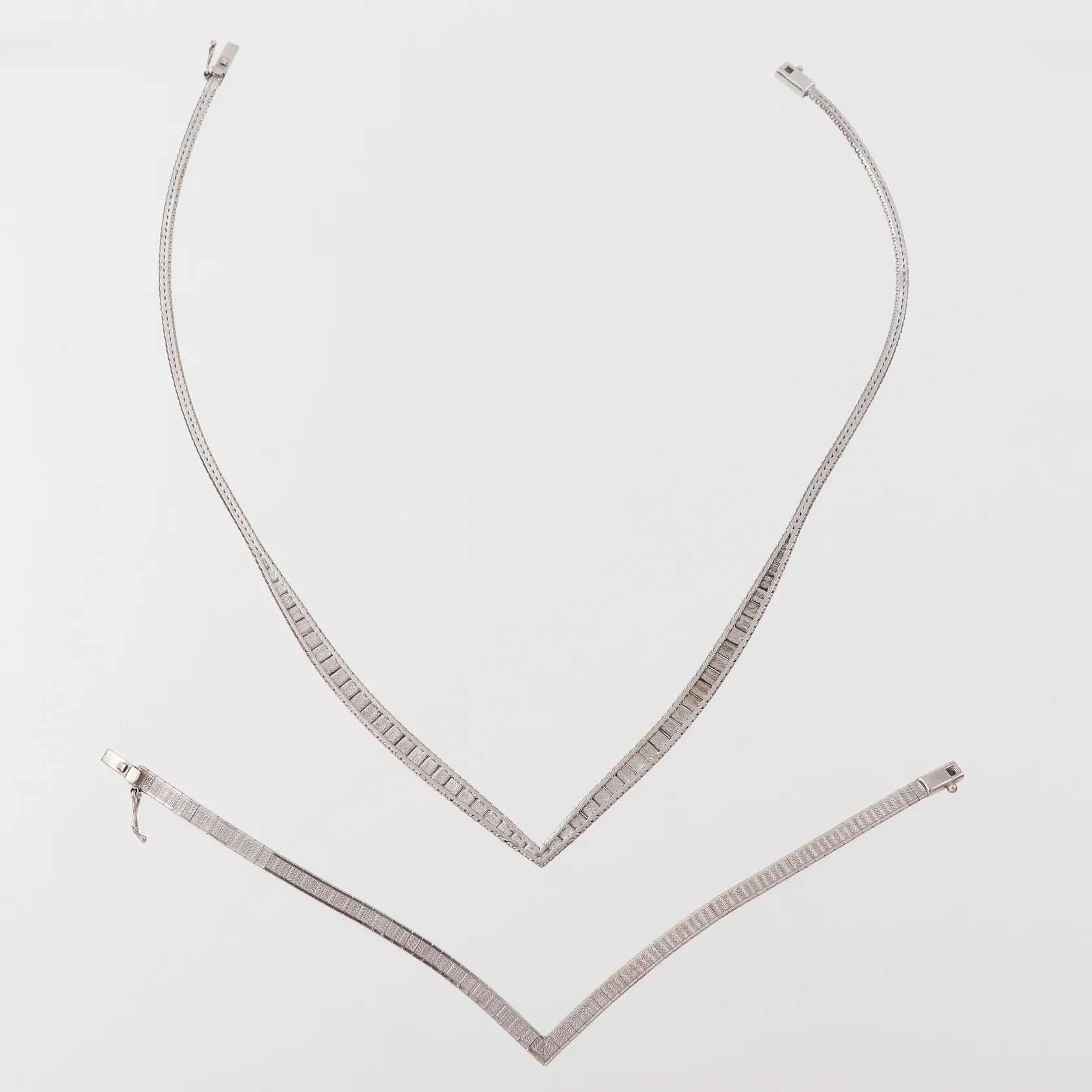 Collier och armband Silver, längd collier ca 40 cm, armband 19 cm, silver. Vikt: 21,5 g.