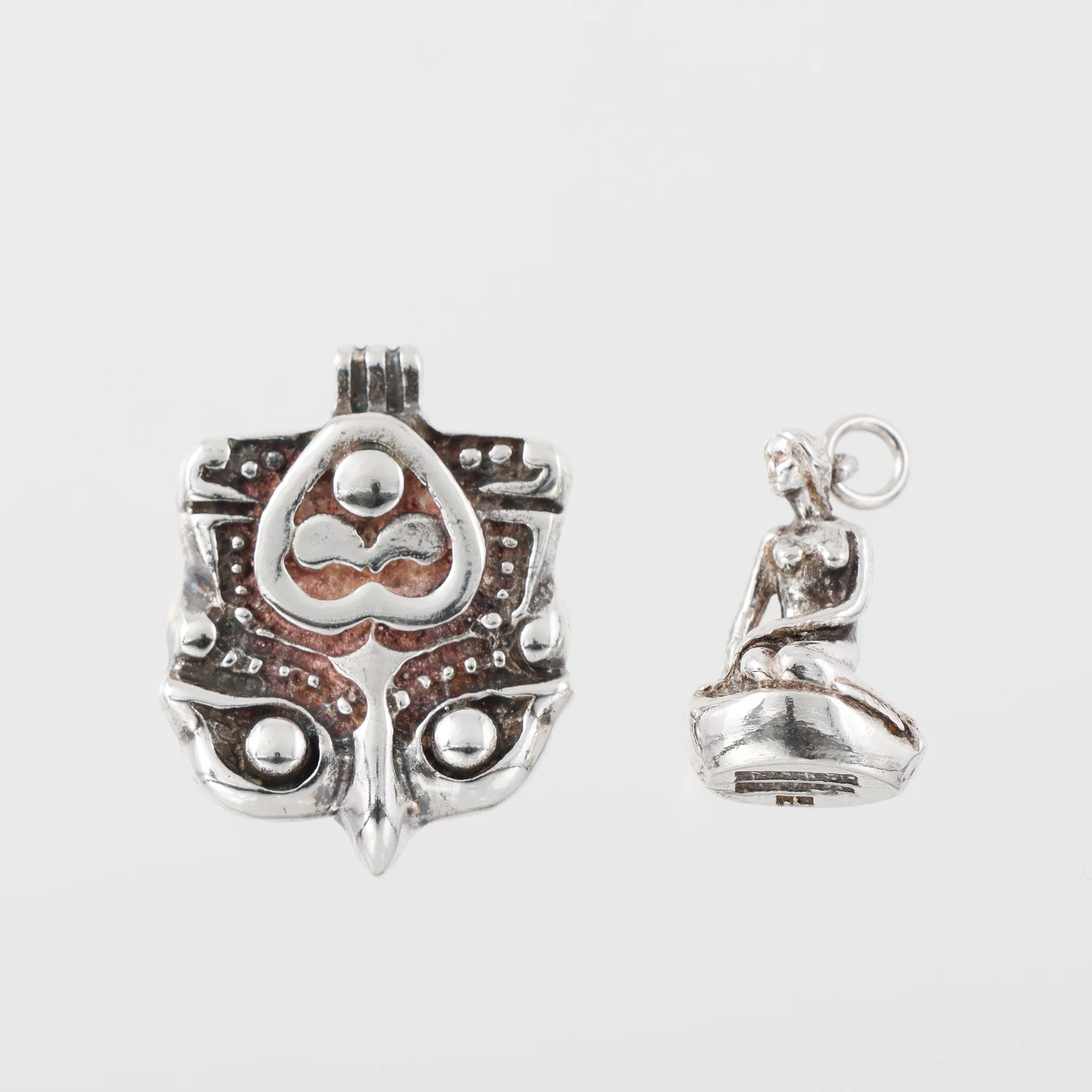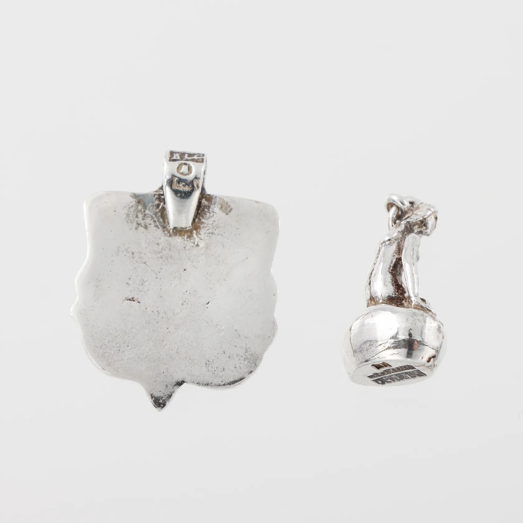 Hänge Kå-Ce Guldsmedja Stockholm, höjd 26 mm + hänge "Den lille havfrue", höjd 18 och 26 mm, silver. Vikt: 13 g.