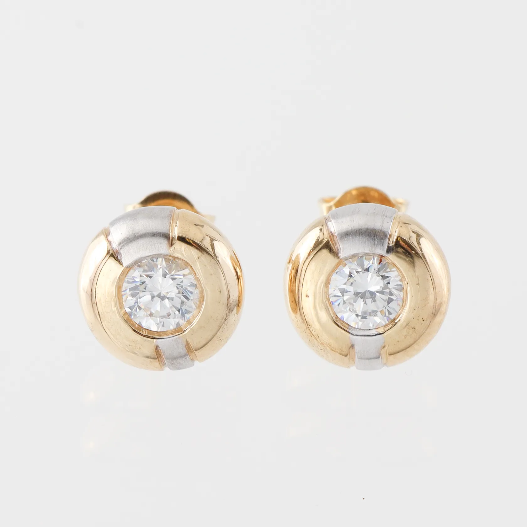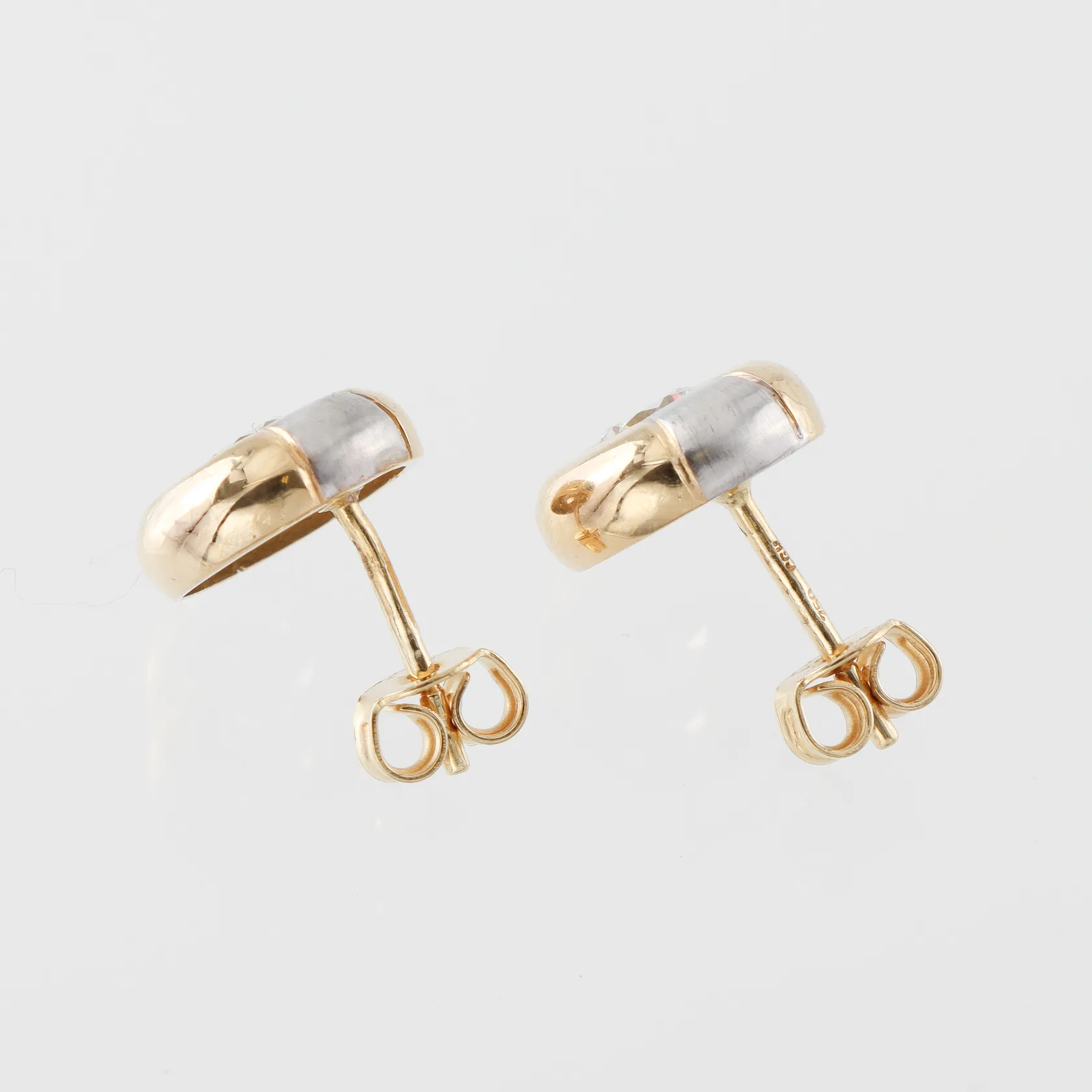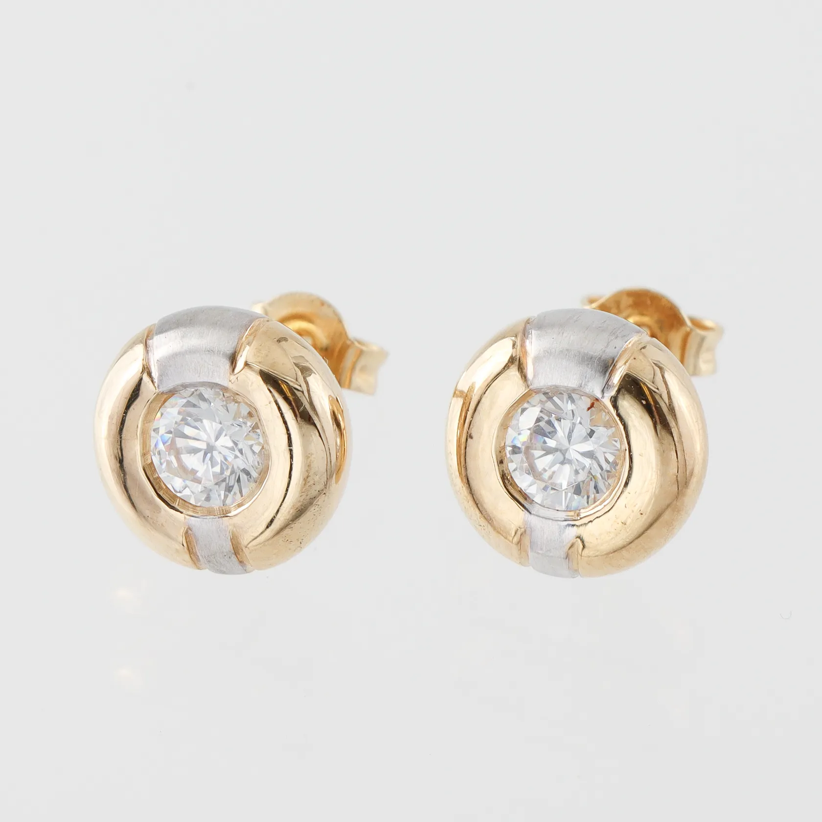 Örhängen paret med vita stenar, diameter ca 9.9 mm, 18k. Vikt: 3,2 g.