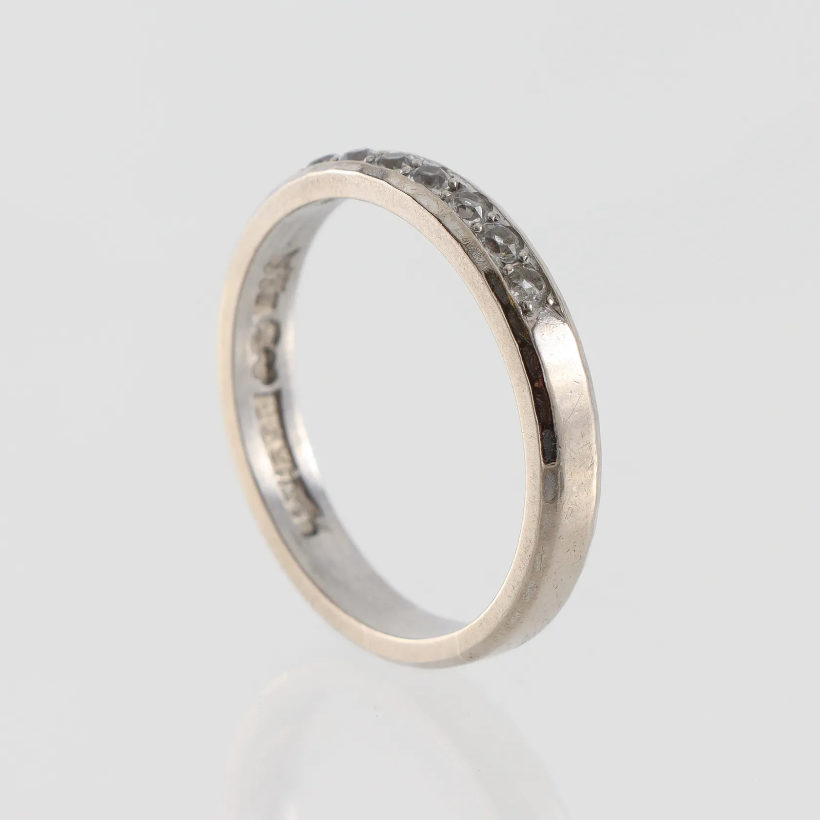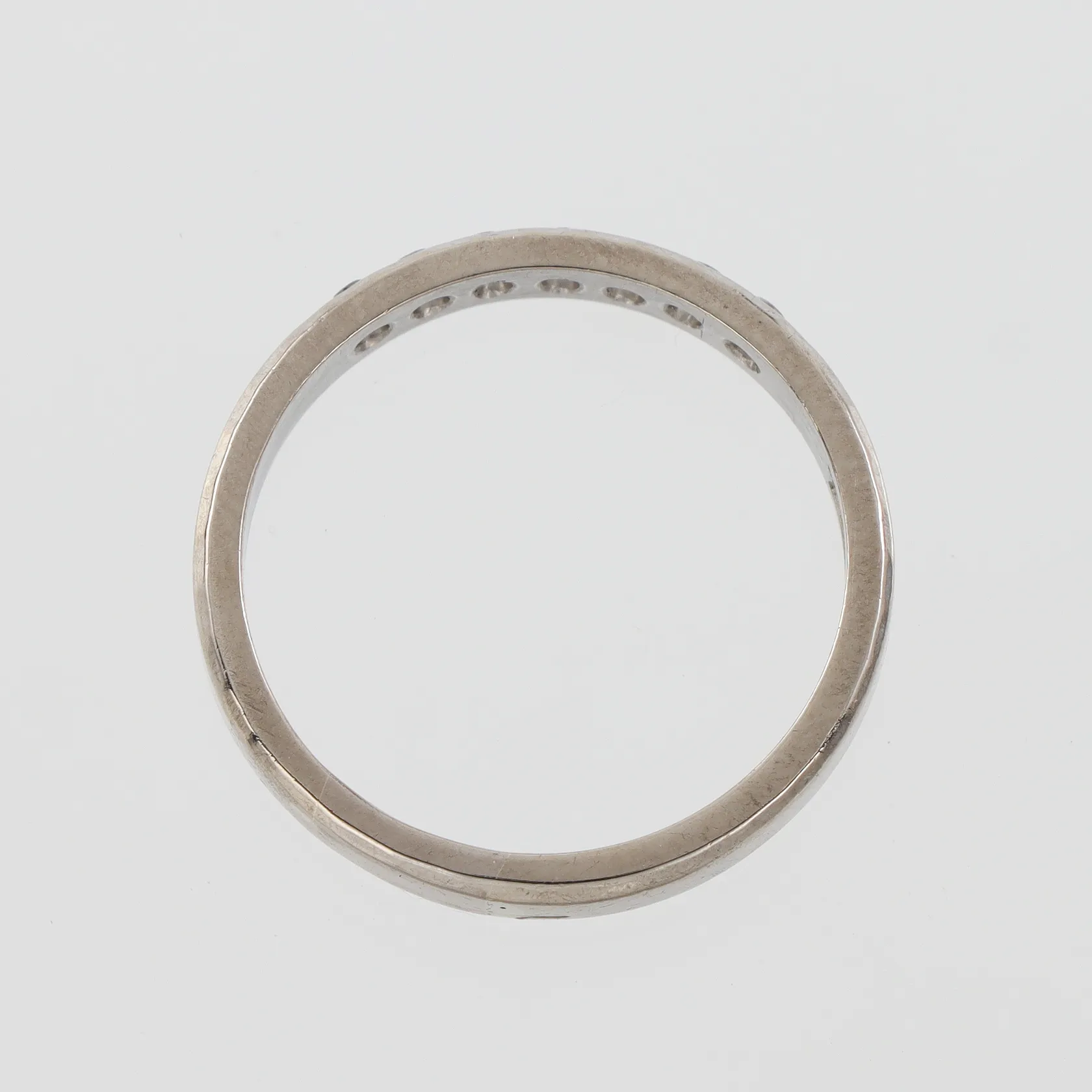 Ring vitguld med syntetiska stenar, Örneus Guldsmedja Stockholm, storlek 18 ½ mm, bredd 3.3 mm, 18k. Vikt: 4,7 g.