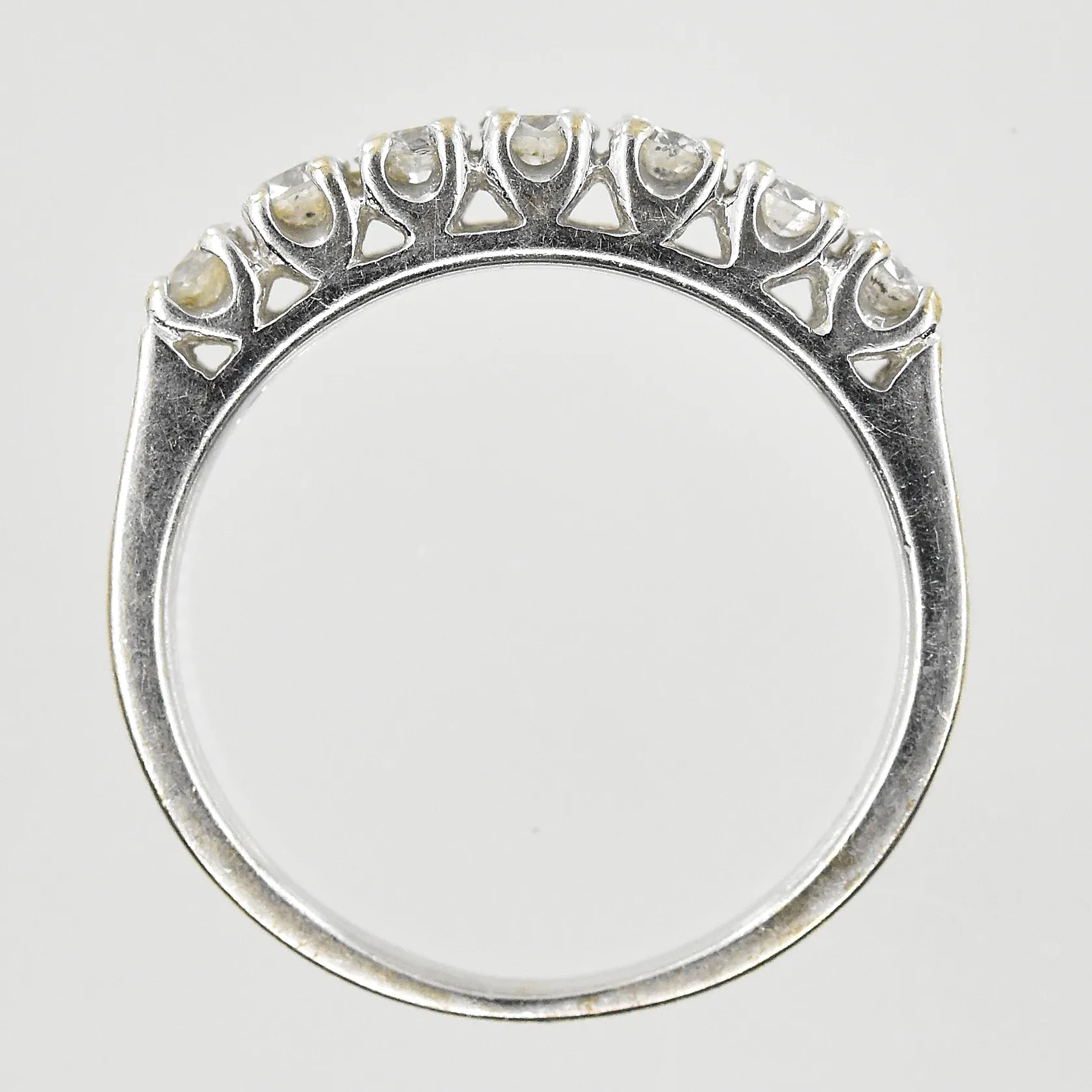 Ring med diamanter ca 0,35 ctv, stl 15½, bredd 2-4 mm, behov av omrodiering, vitguld, 18K. Vikt: 3 g.