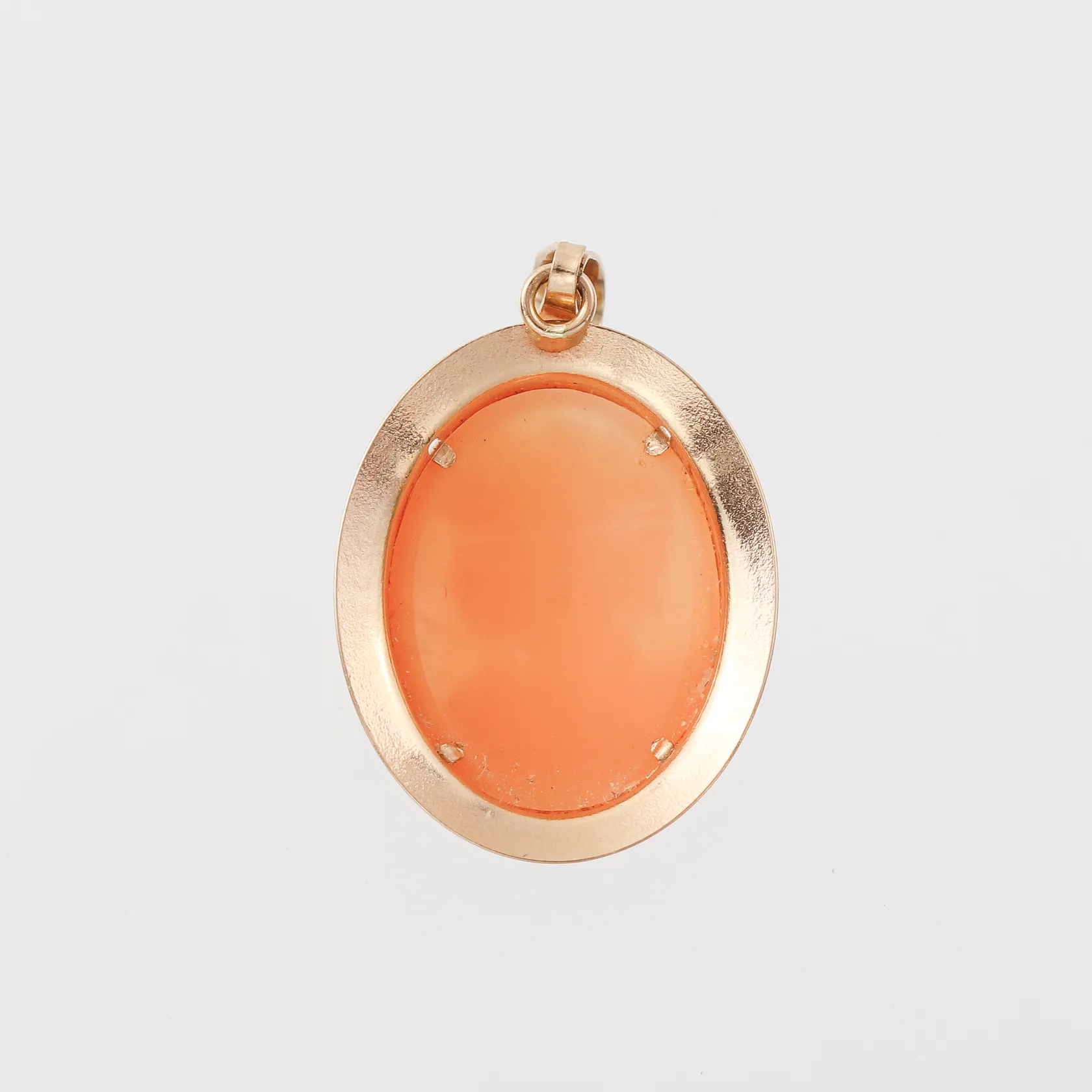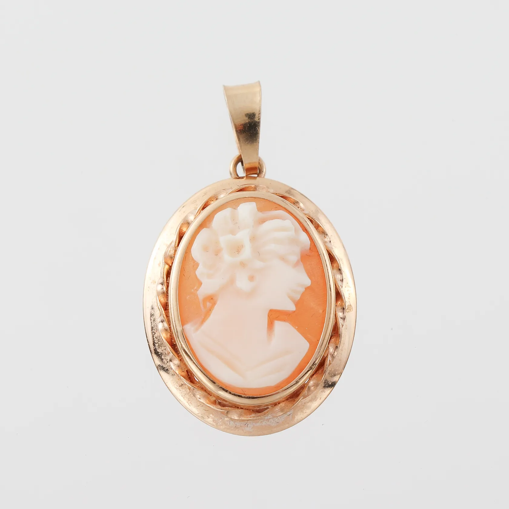 Caméhänge, Bronsil AB Köping, höjd med ögla 26 mm, 18k. Vikt: 1,9 g.