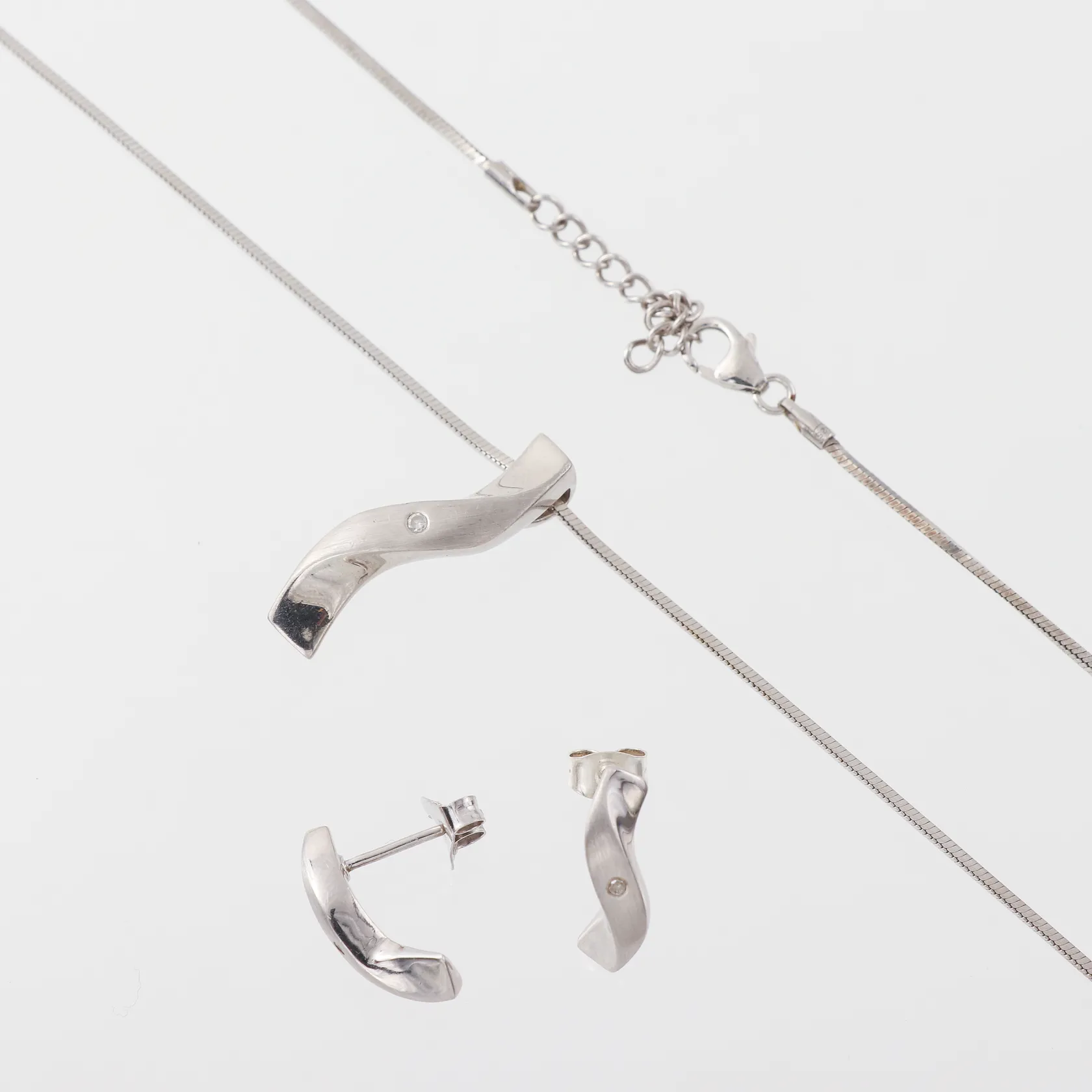 Smyckesset, Guldfynd AB, kedja 40+3cm med hänge och parörhängen, silver. Vikt: 10,9 g.