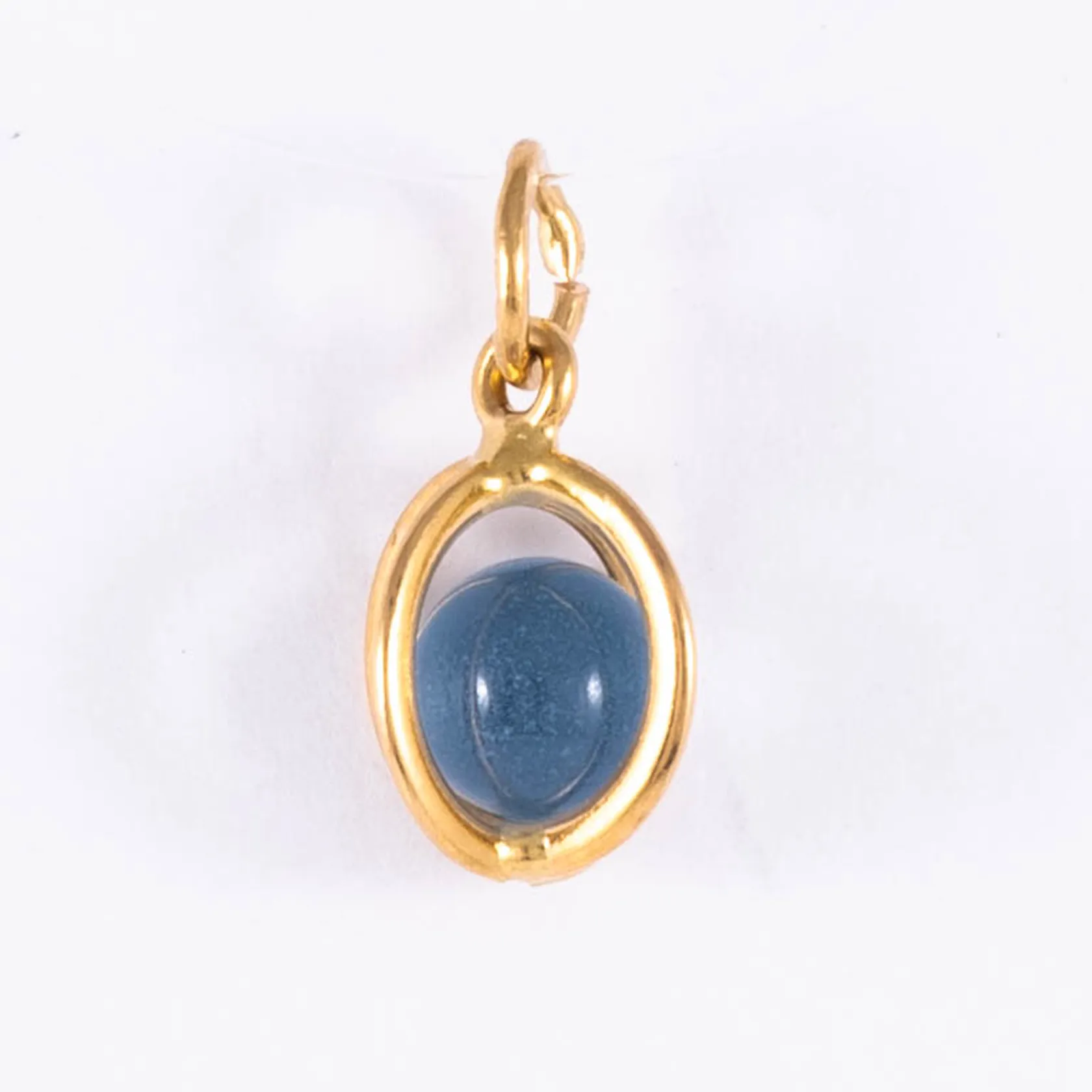 Hänge i 18K guld med en ljusblå kula. Det är 13,4 mm långt inkl. ögla och väger 0,7g. Vikt: 0,7 g.