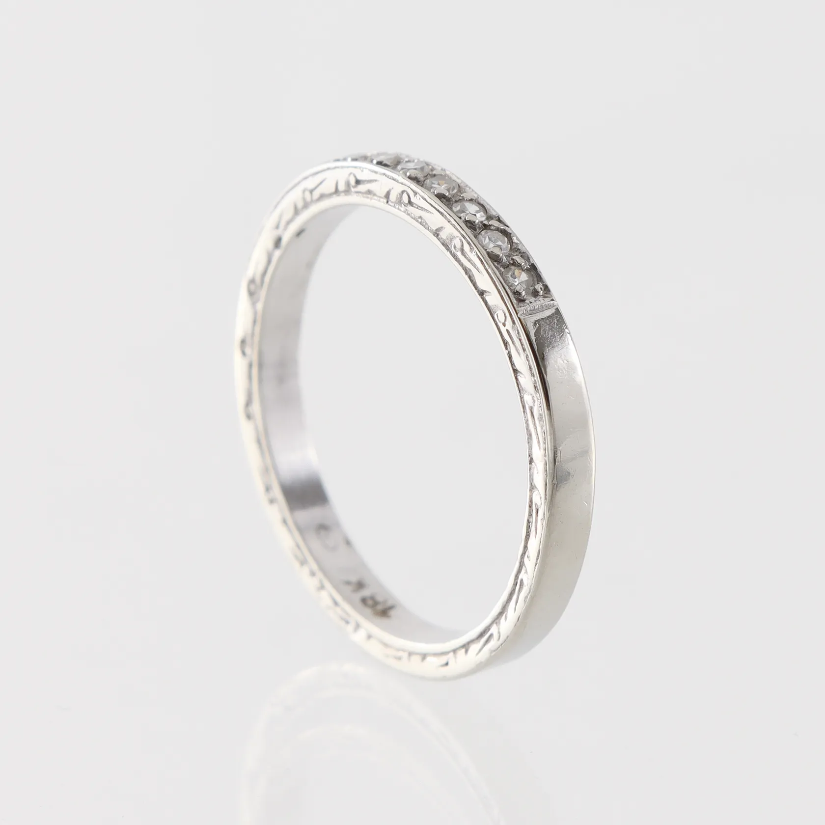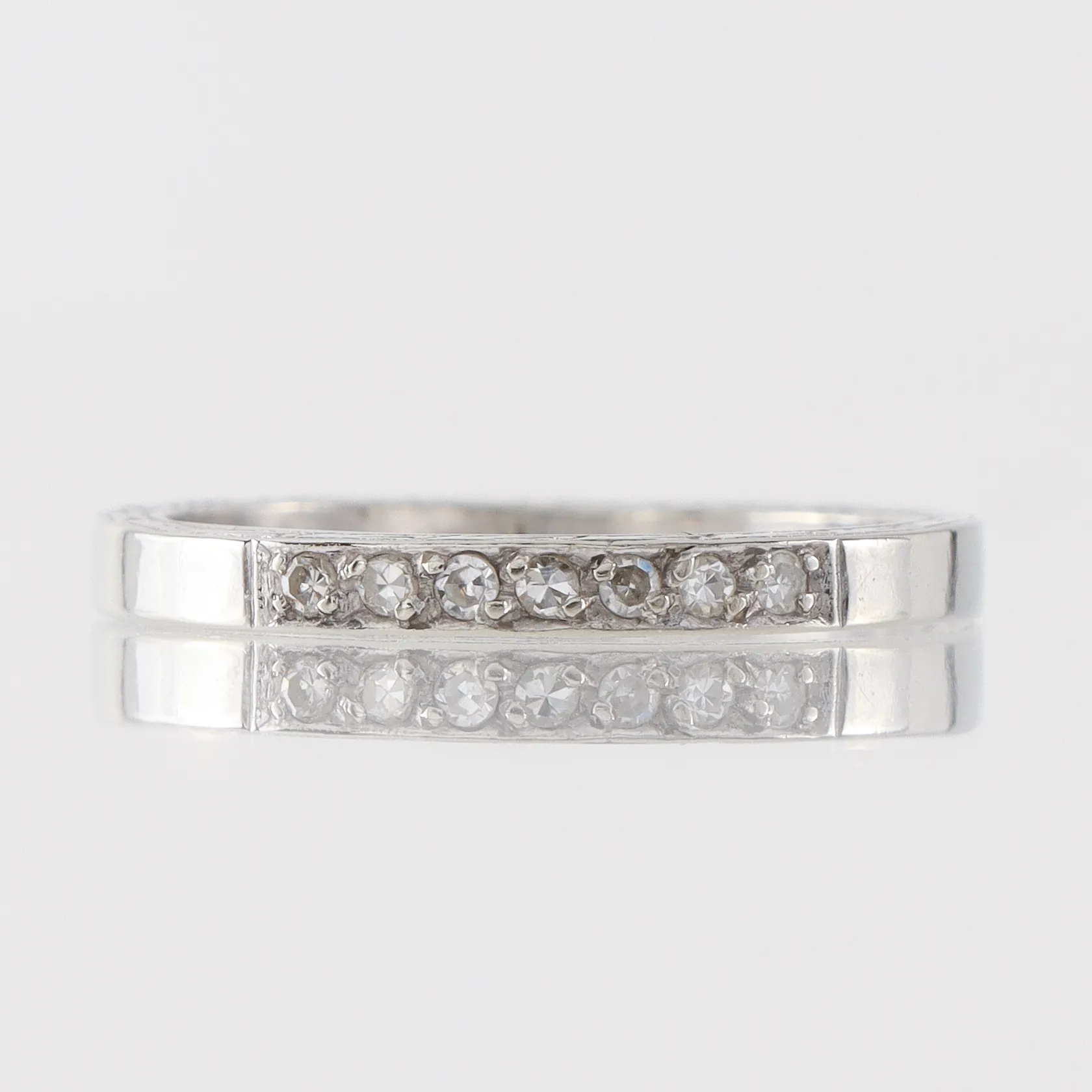 Ring vitguld diamanter ca 8x0,01ct, storlek 17 mm, bredd 2.3 mm, 18k. Vikt: 2,9 g.