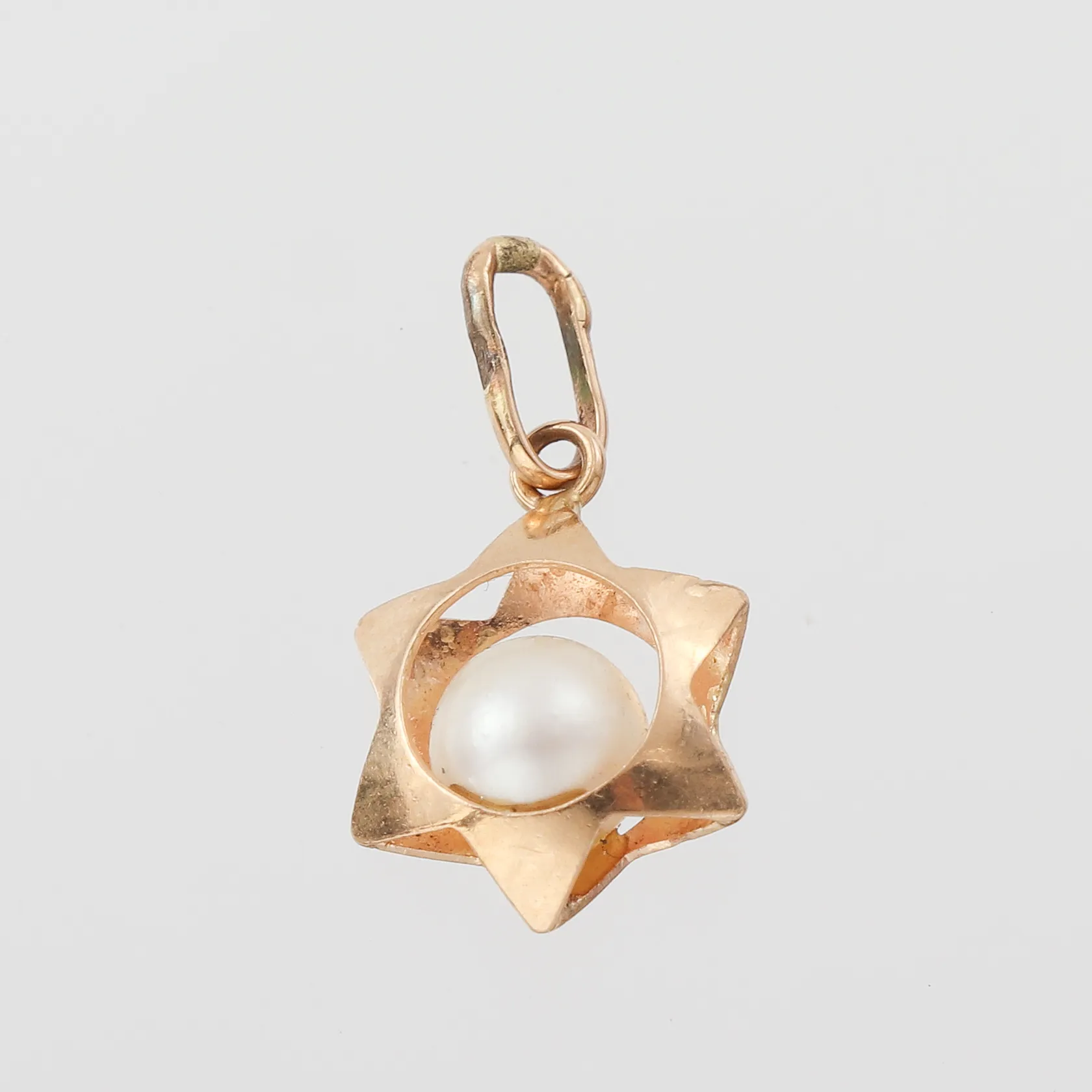 Hänge med pärla, höjd med ögla 18 mm, 18k. Vikt: 0,7 g.