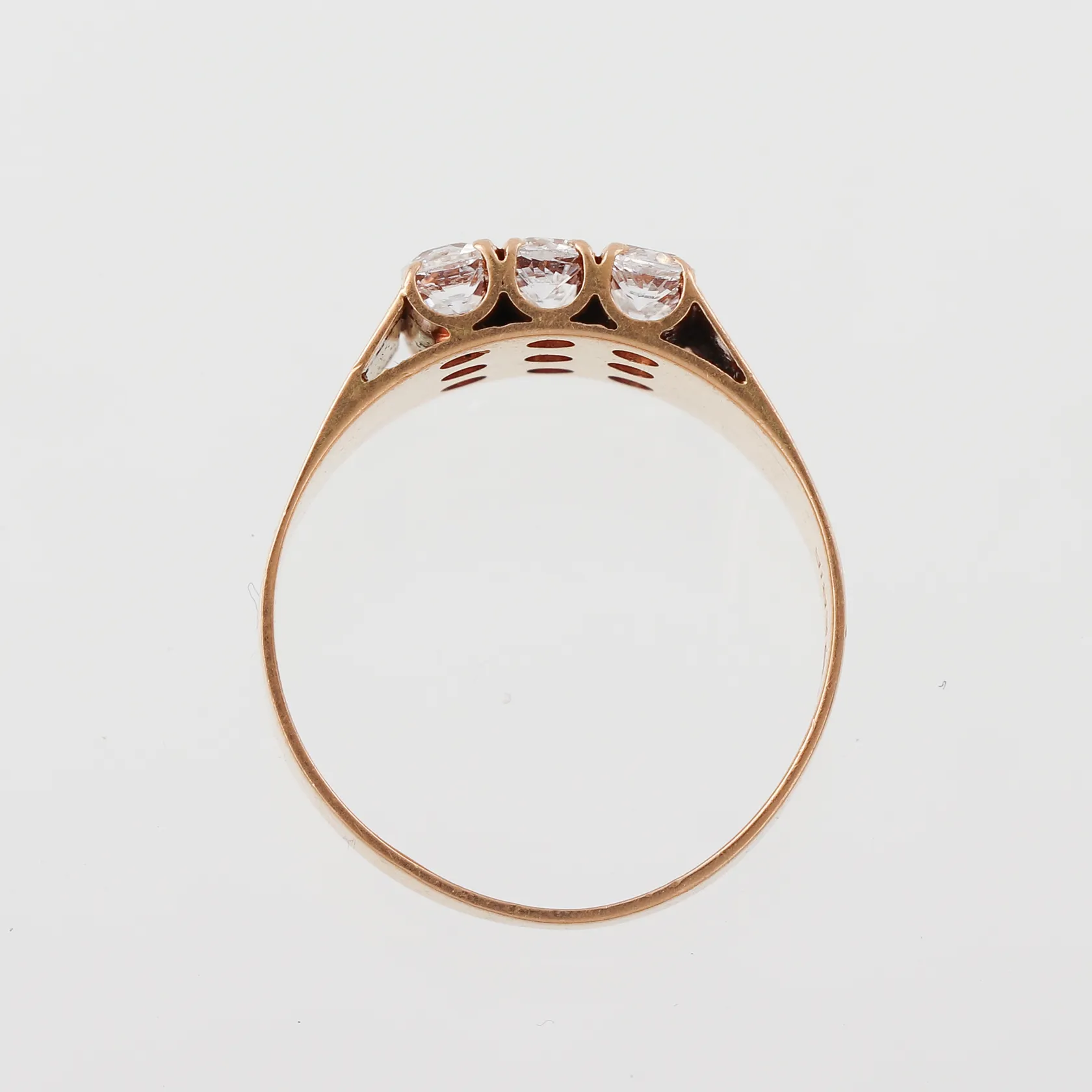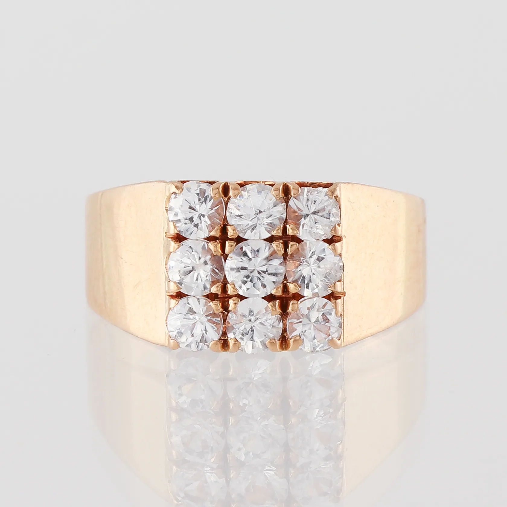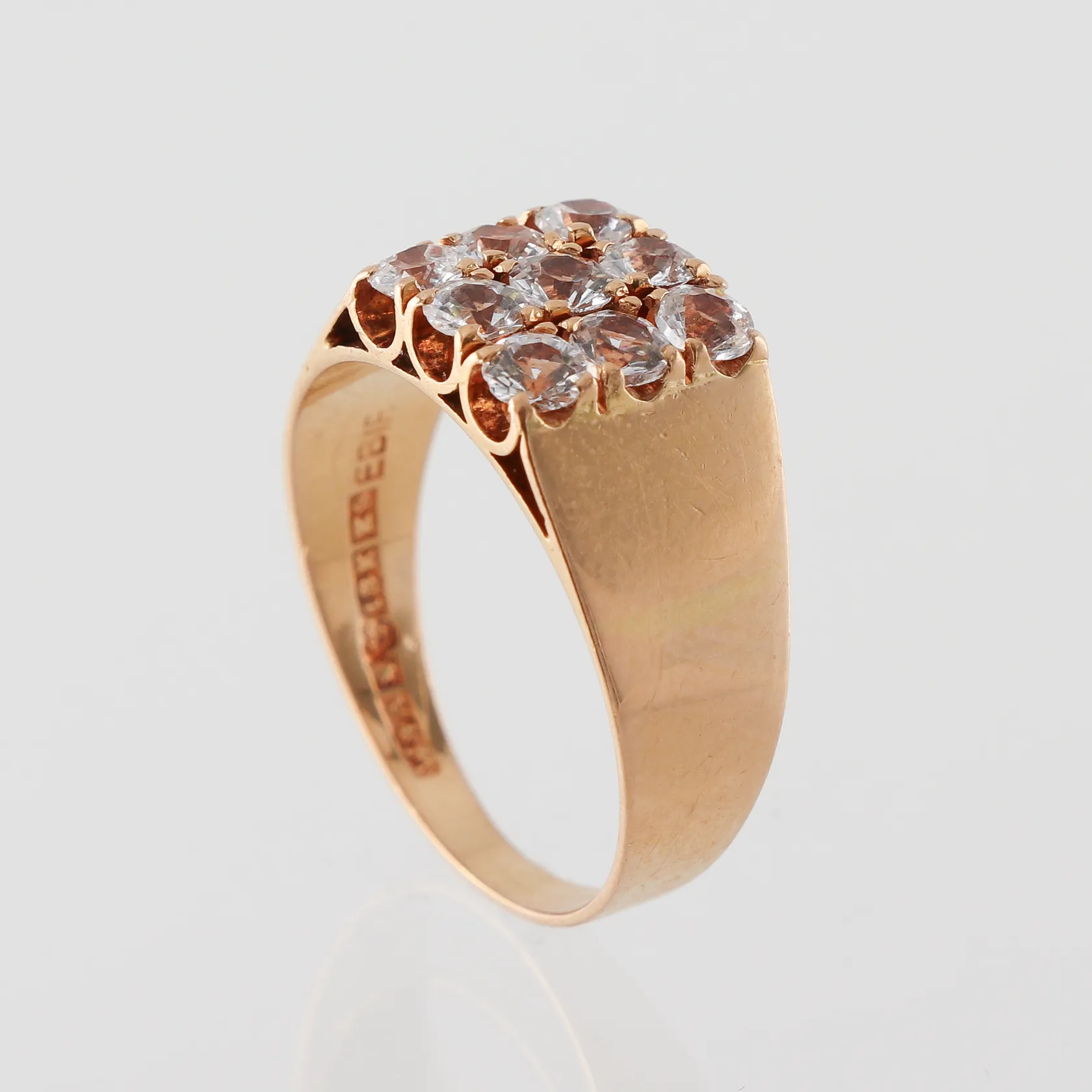 Ring med 9 st vita stenar, Sävsjö Guldsmeds AB, storlek 17 mm, bredd 2.1-8.9 mm, 18k. Vikt: 3,8 g.