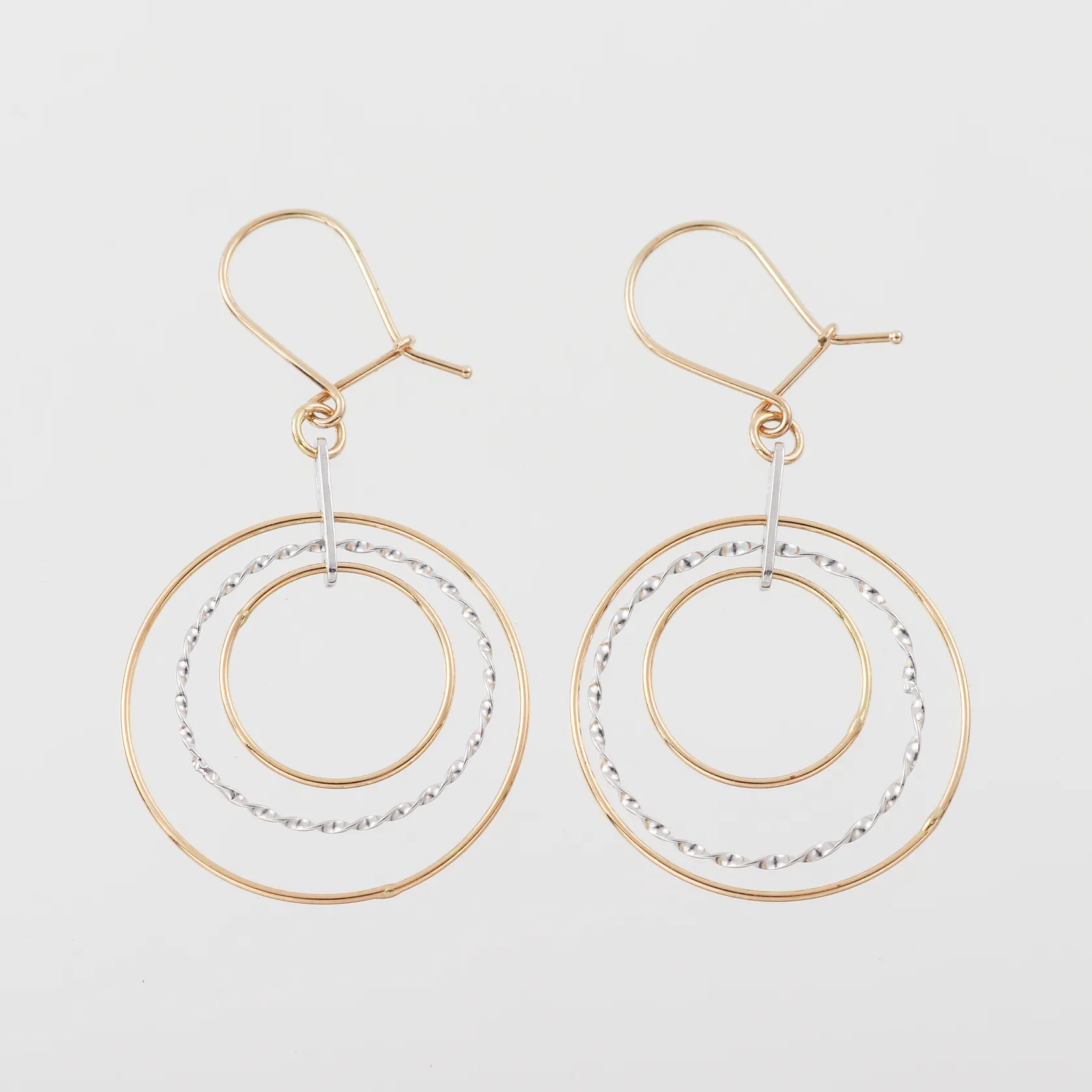 Örhängen paret, röd och vitguld, diameter ca 24 mm, Guldfynd, 18k. Vikt: 3,1 g.