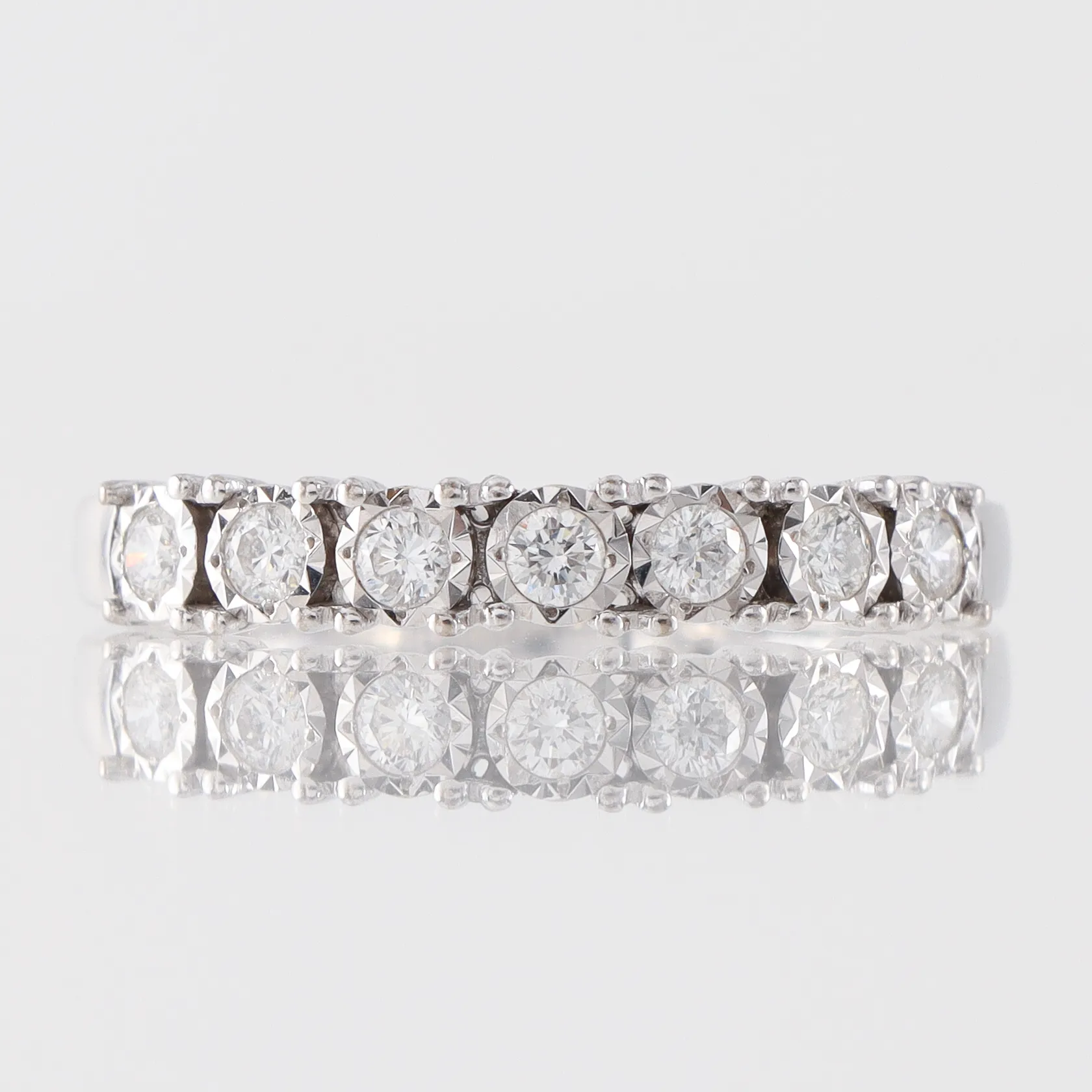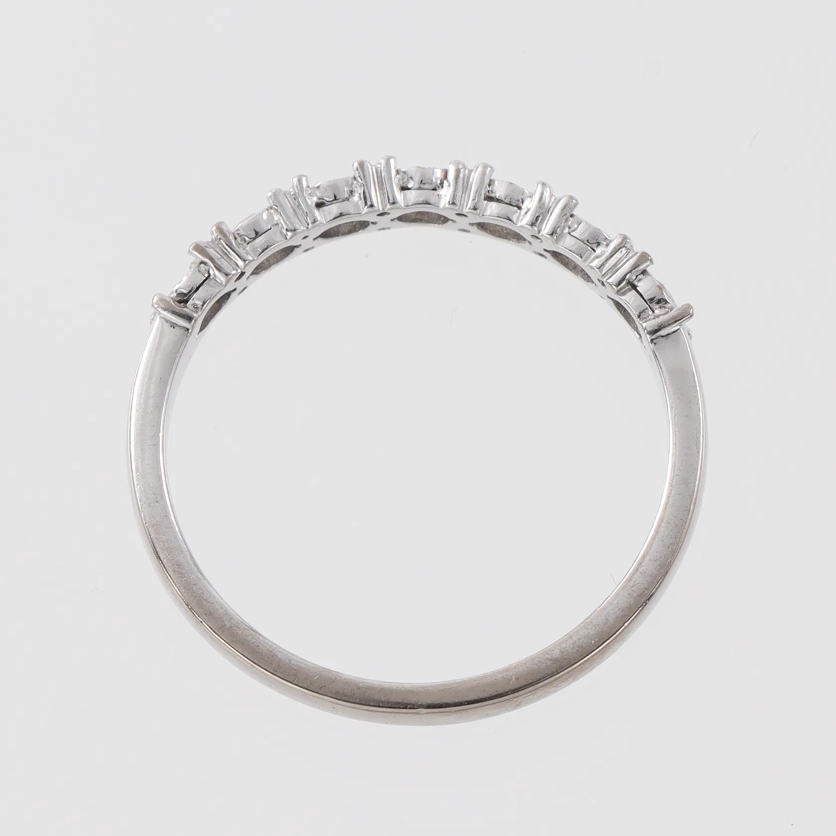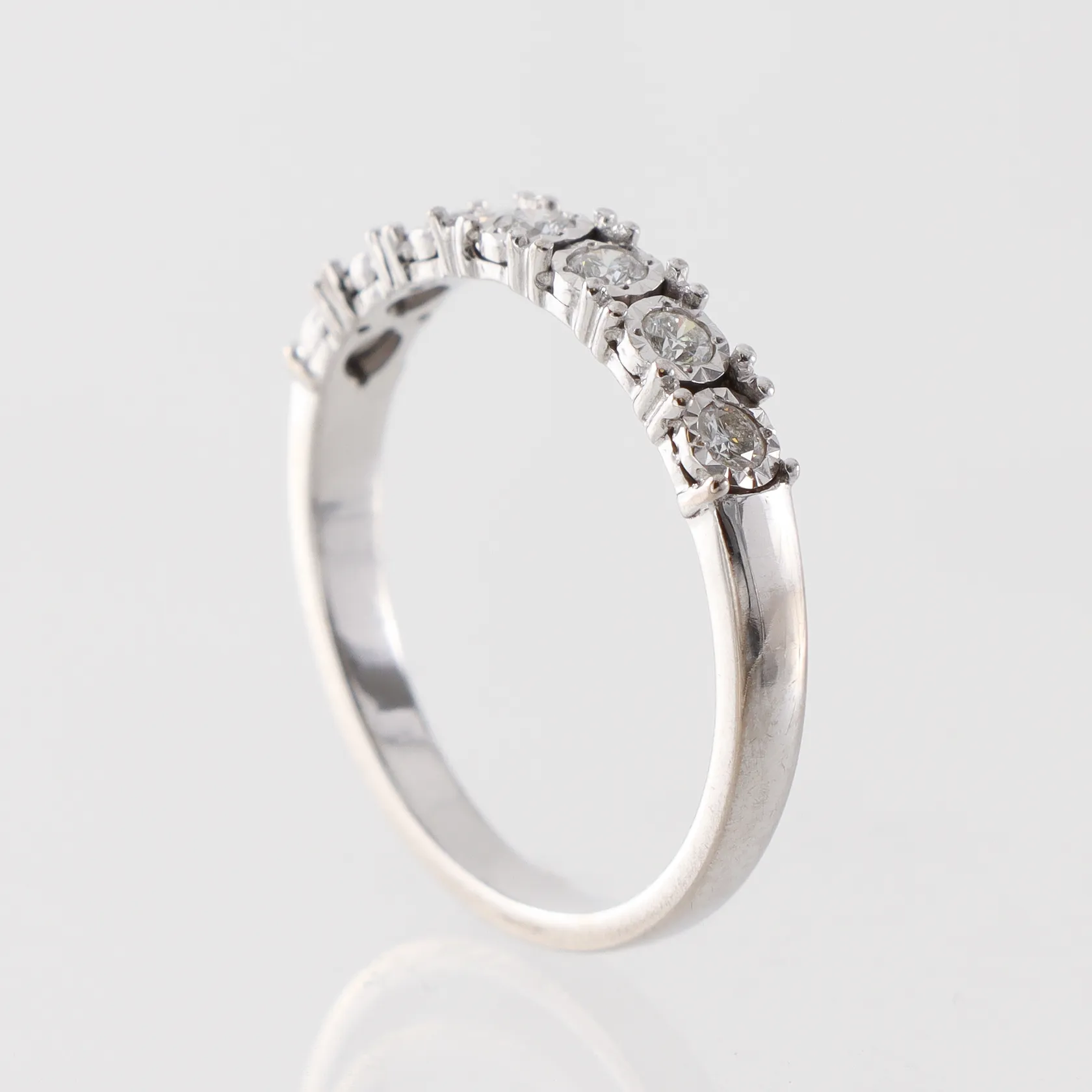 Ring vitguld med diamanter ca 7x0,03ct, Guldfynd AB, storlek 17 ¼ mm, bredd 2-3.4 mm, 18k. Vikt: 2,8 g.