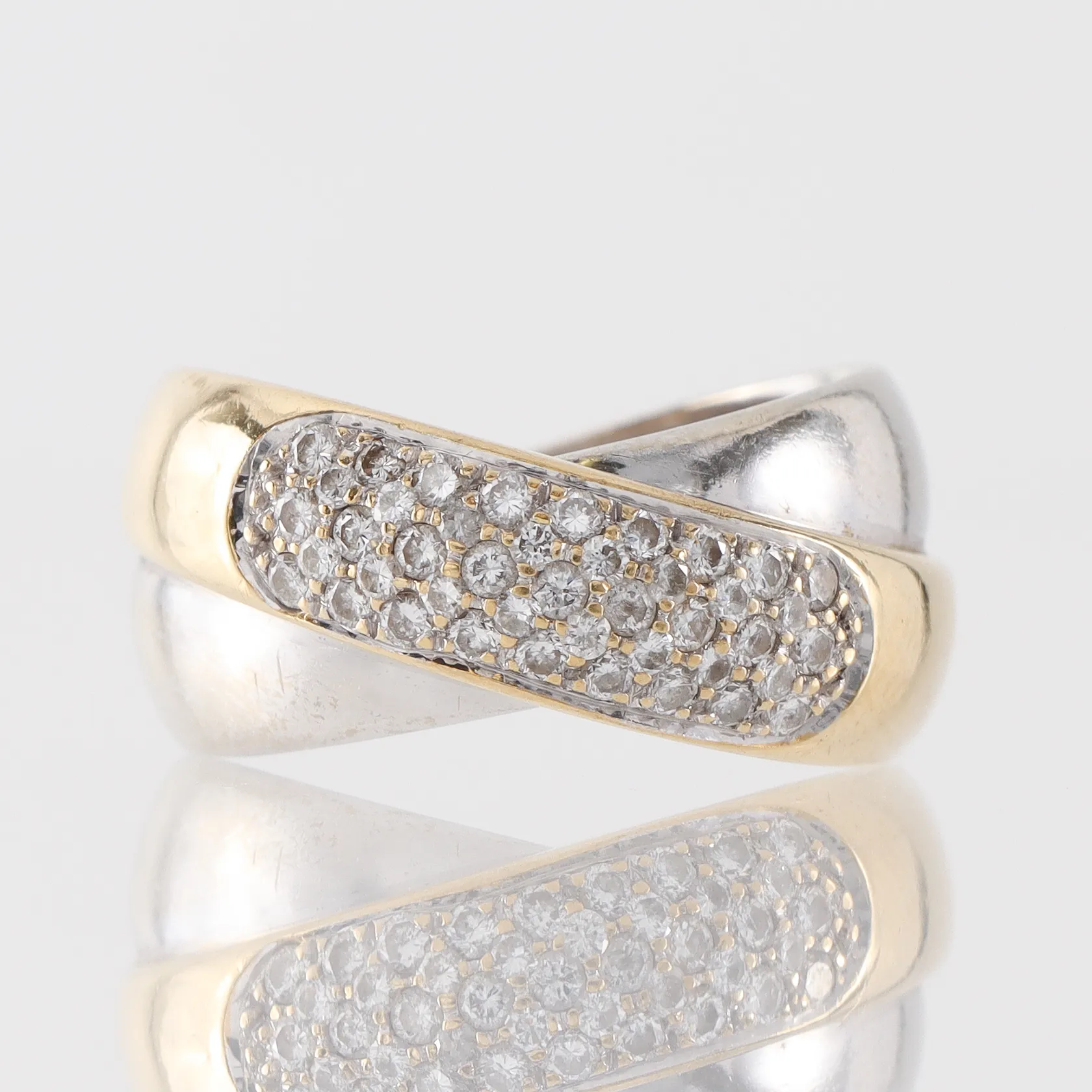 Ring röd och vitguld med diamanter ca 27x0,02ct och ca 16x0,01ct , storlek 17 ¾ mm, bredd 5.3-10.5 mm, 18k. Vikt: 9,1 g.