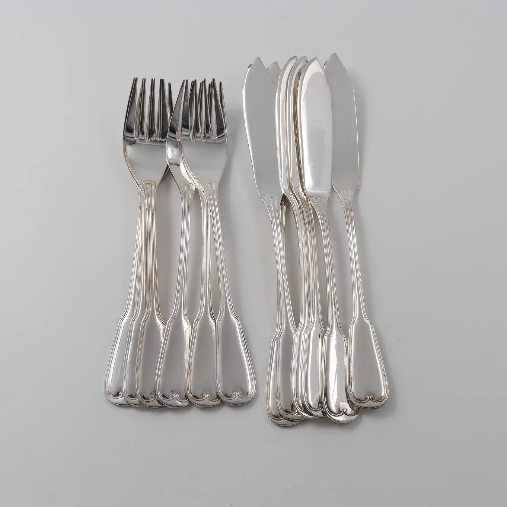 Fiskbestick 6+6 st, nysilver stämplade Älghult-Proffs, längd 19 och 21 cm, oanvända. Skickas med paket..