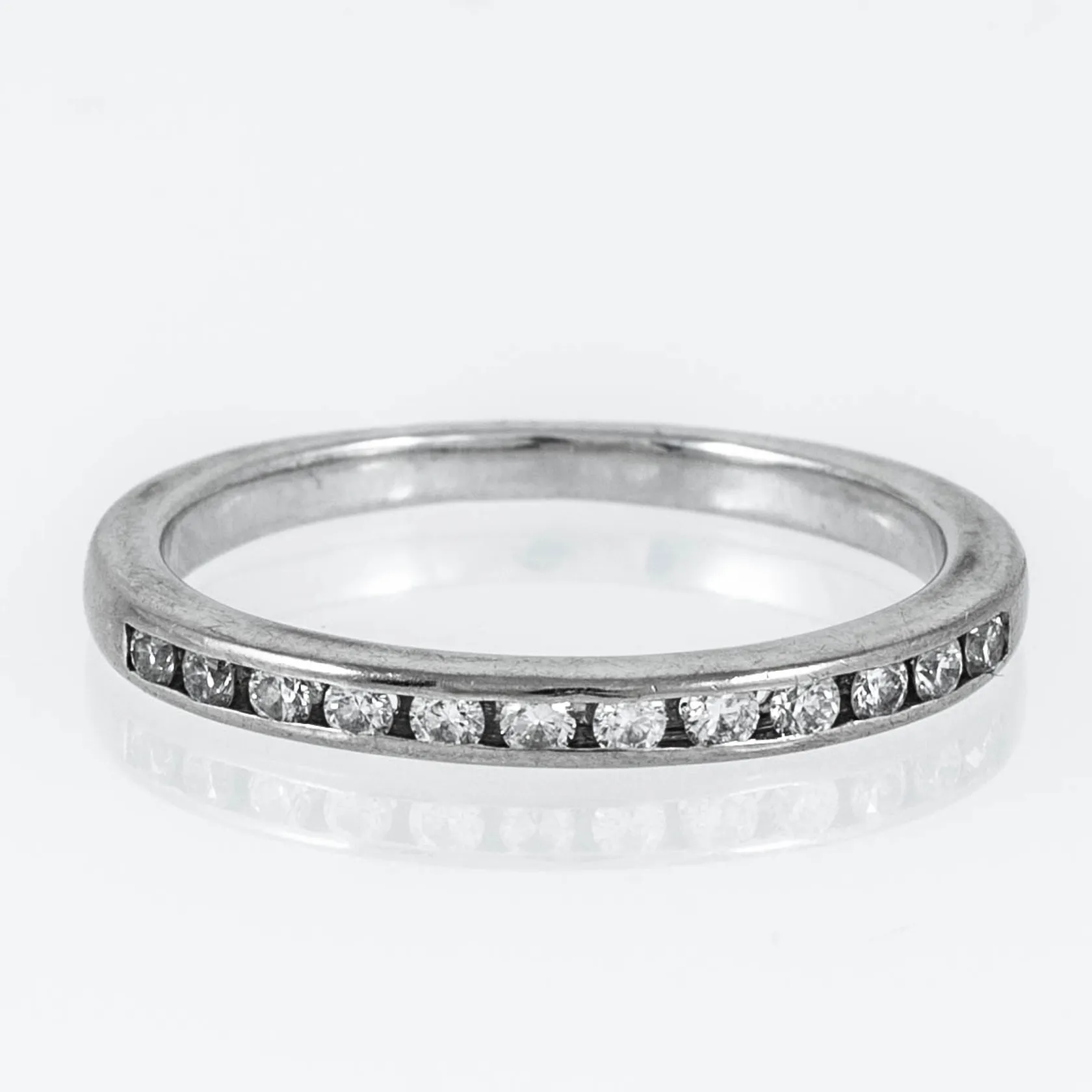 Ring i vitt guld 18K med 12 diamanter á ca 0,02ct i kanalfattning. Den är 1,9 - 2,4 mm bred, är i storlek 18¼ och väger 3,3g. Stämplad GHA (Guldfynd) 750. Vikt: 3,3 g.