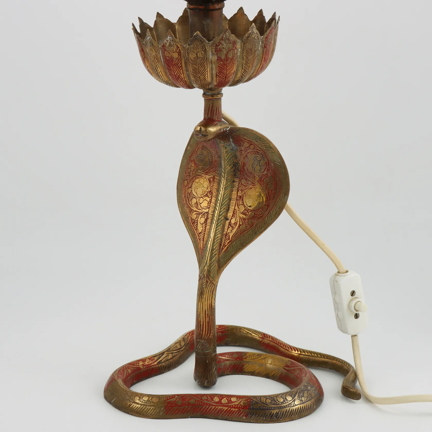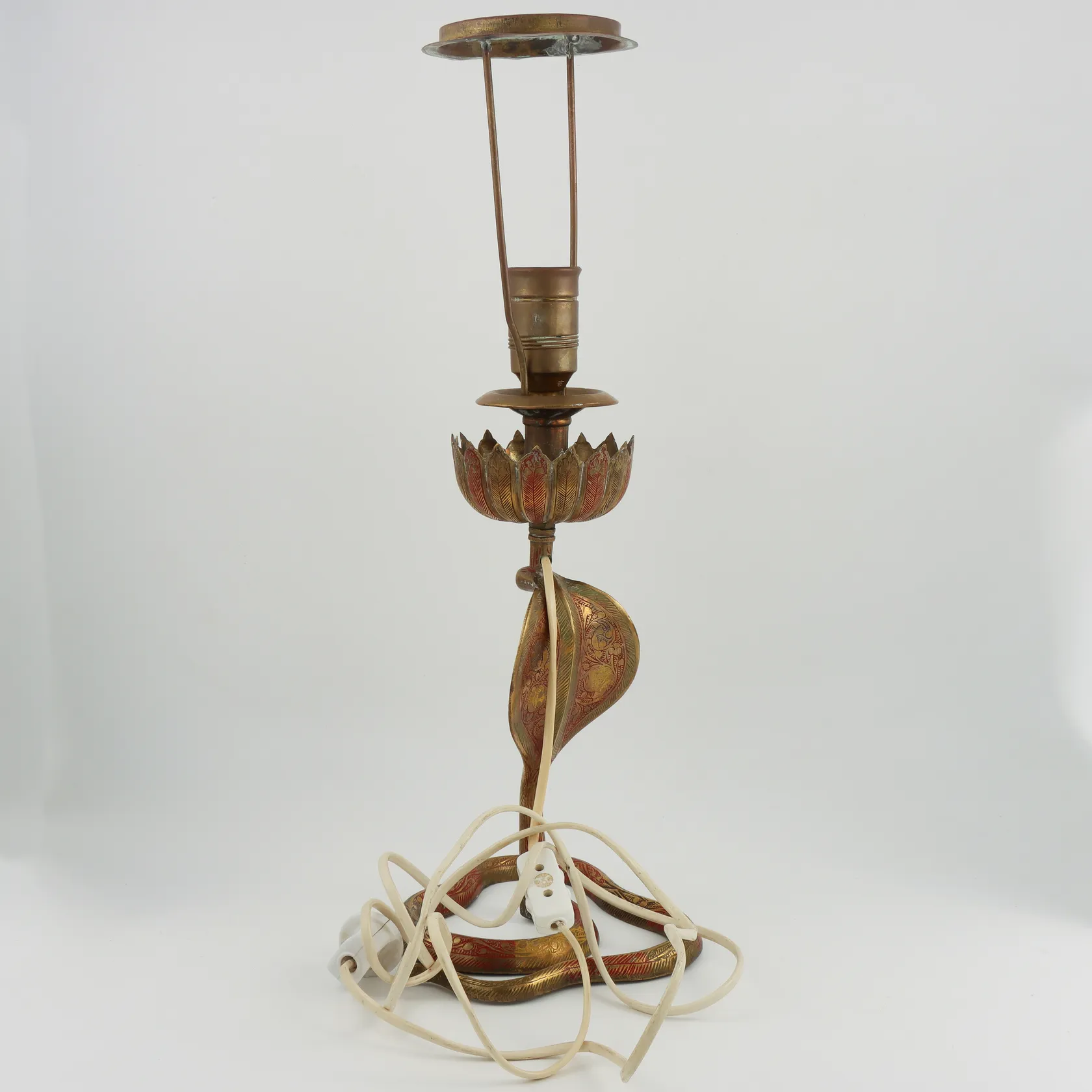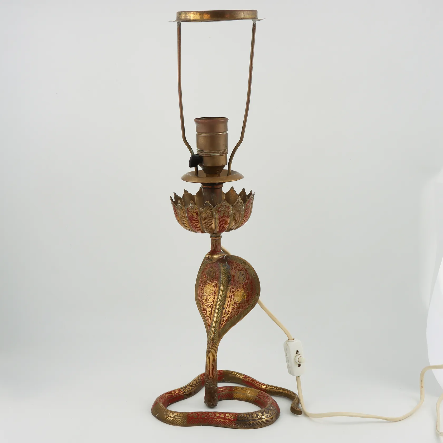 Bordslampa "Cobra", mönstrad mässing, 1900 tal, ej funktionstestad, höjd ca 50 cm. Skickas med postpaket.