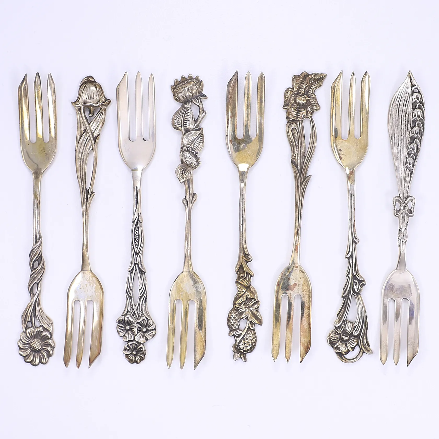 8 Dessertgafflar, Svenska Floran, 13cm, Silver 830/1000 Vikt: 146 g.
