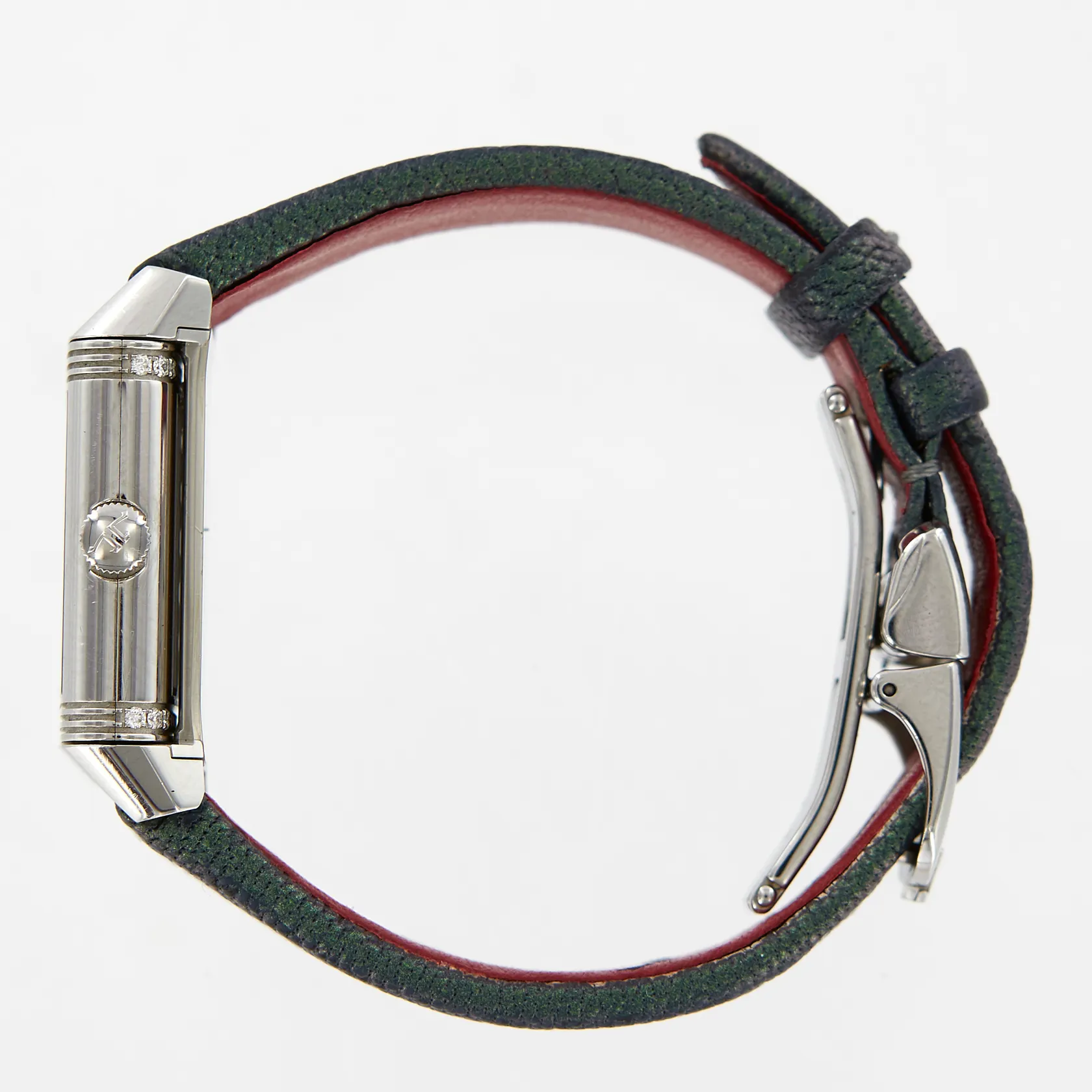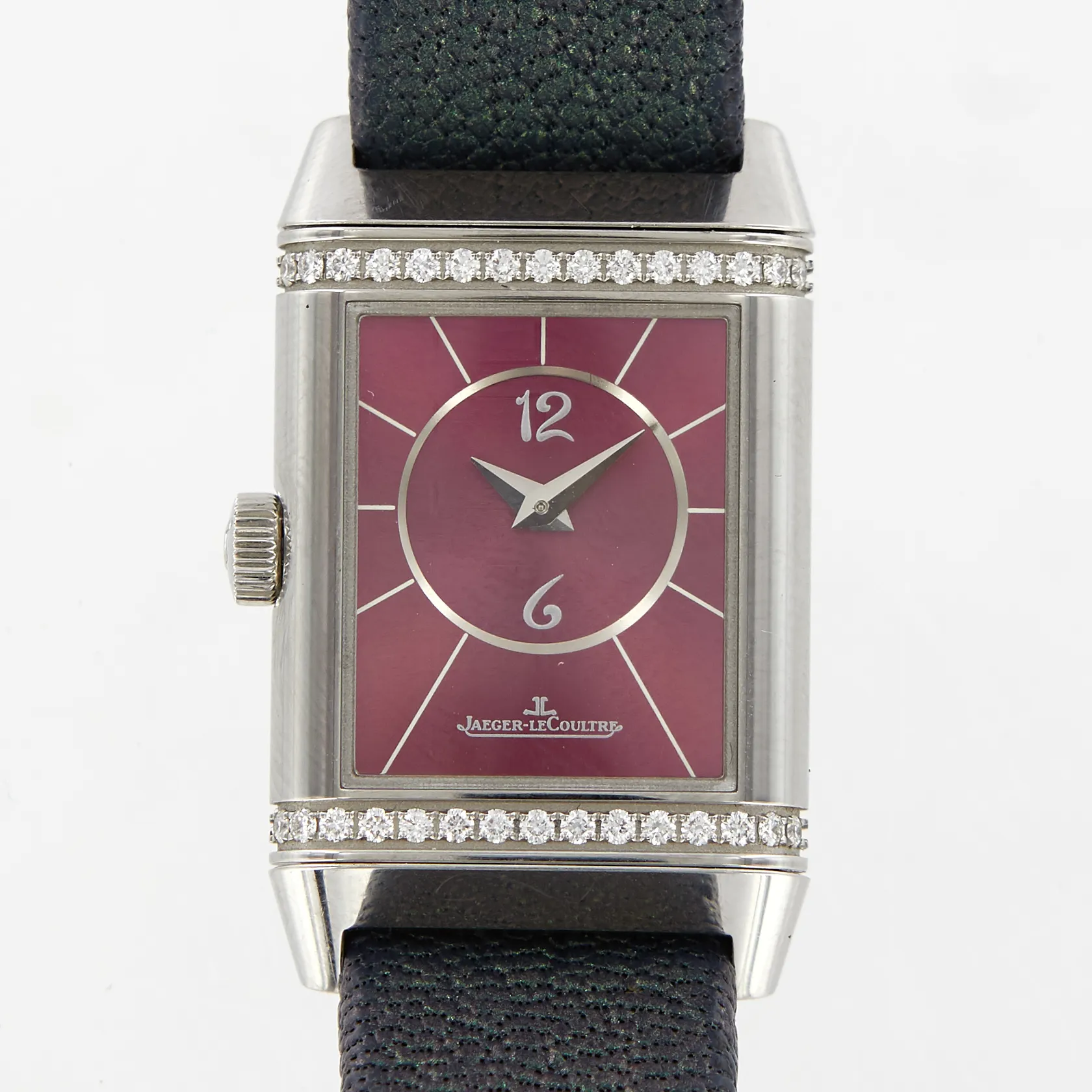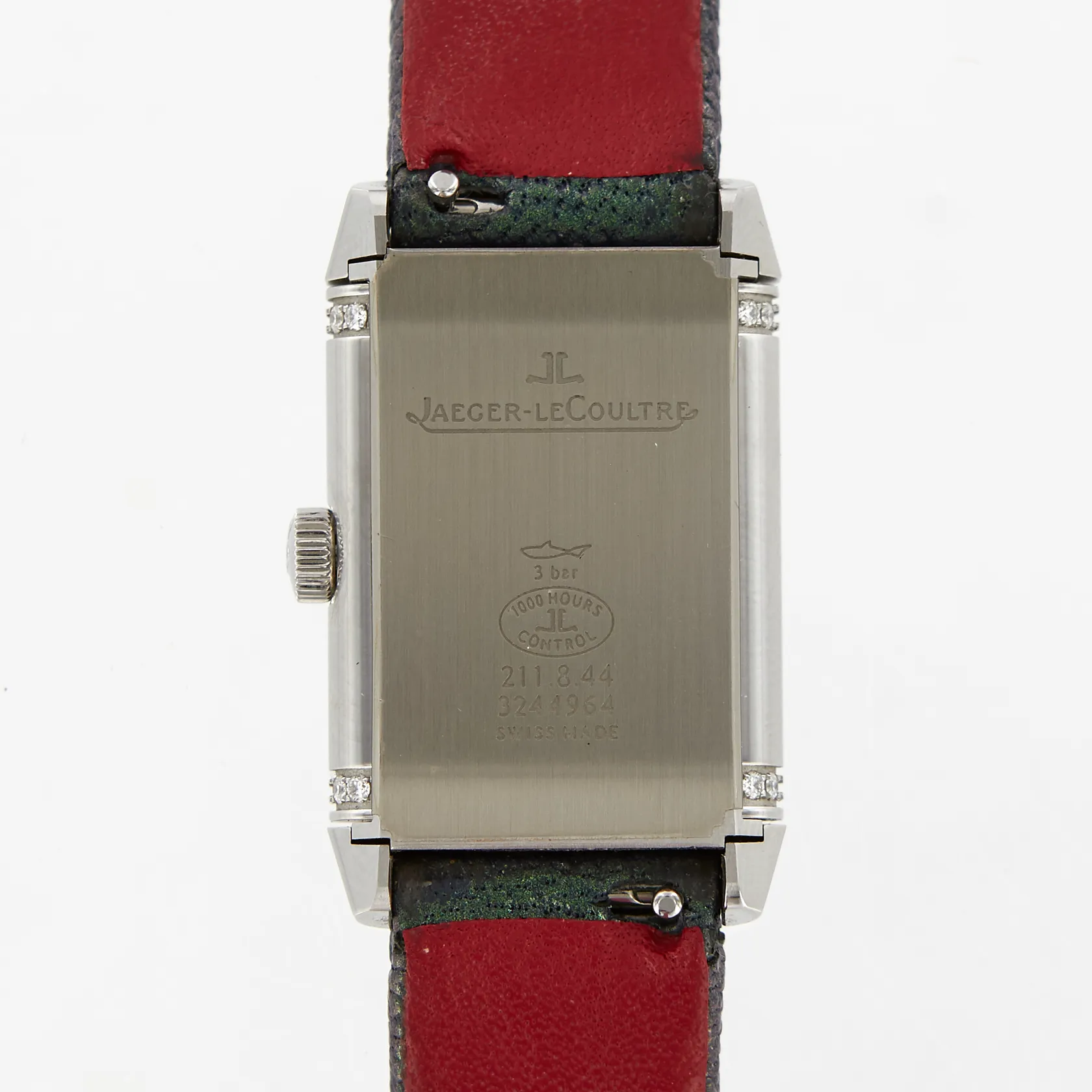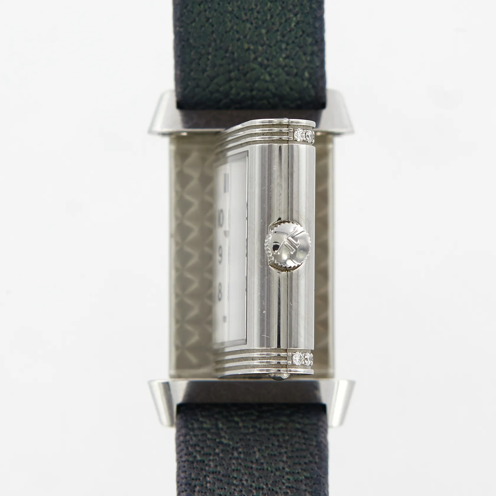 Damur Jaeger-LeCoultre Reverso, Classic small, 21x35mm, manuell, referens-nr: JLQ26684LC, serie-nr:3244964, stål, diamanter på ena boetten, original viklås, extra läderband, garanti certifikat, från Jaeger-LeCoultre Paris 2017, bok, låda, ytterkartong, slitage i lådan