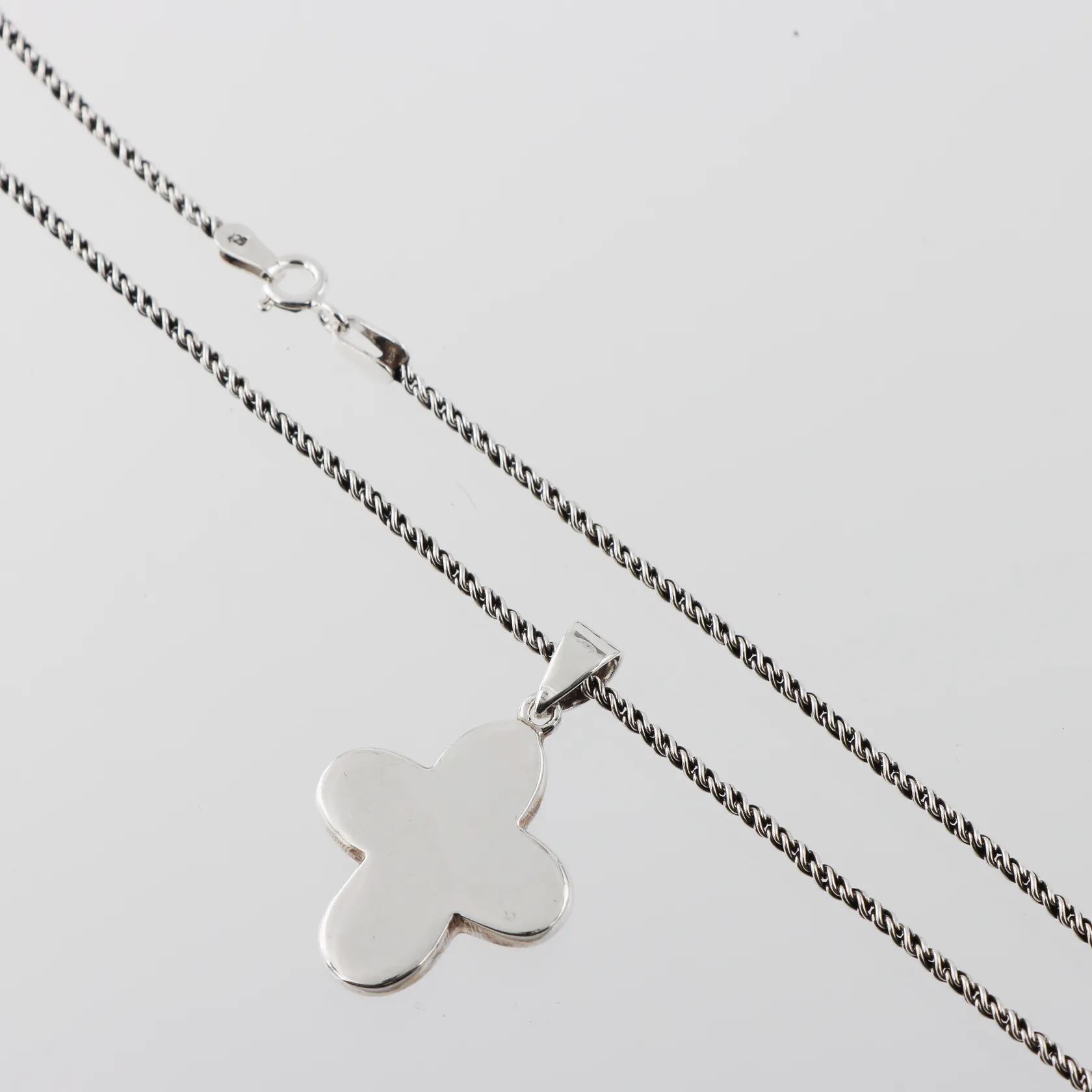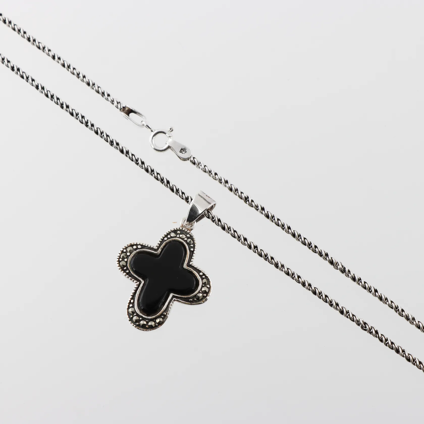 Kedja Cordell, längd 51cm, bredd 1,7mm med hänge kors svart sten och markasiter, silver Vikt: 10,7 g.