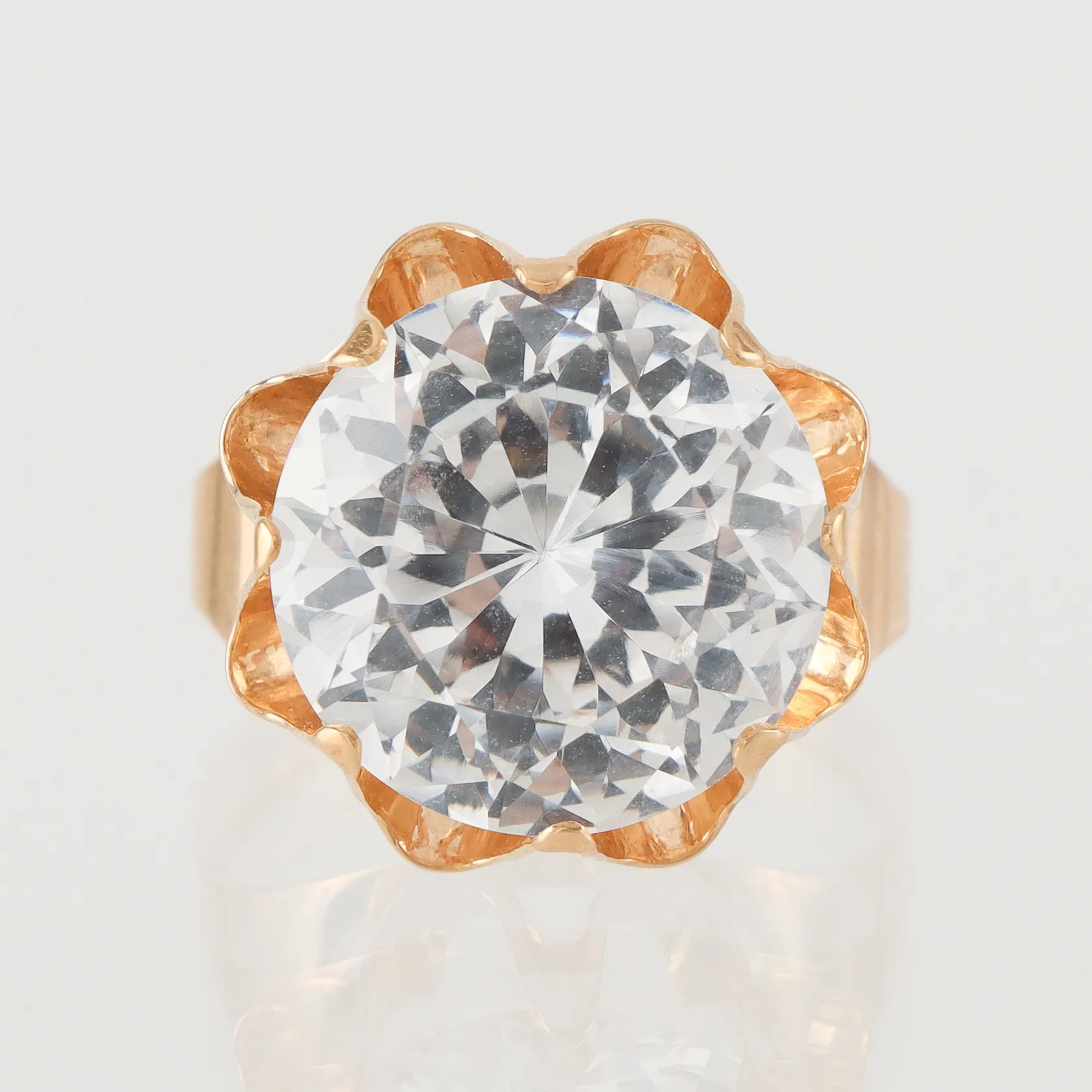 Ring med syntetisk spinell, storlek 17 mm, bredd 2.8-15.7 mm, 18k importstämpel 1973 Vikt: 5,7 g.
