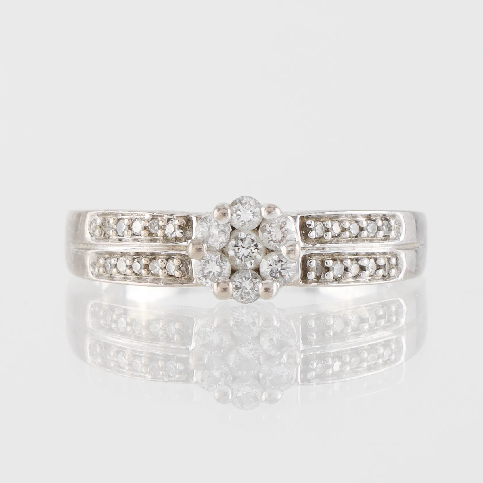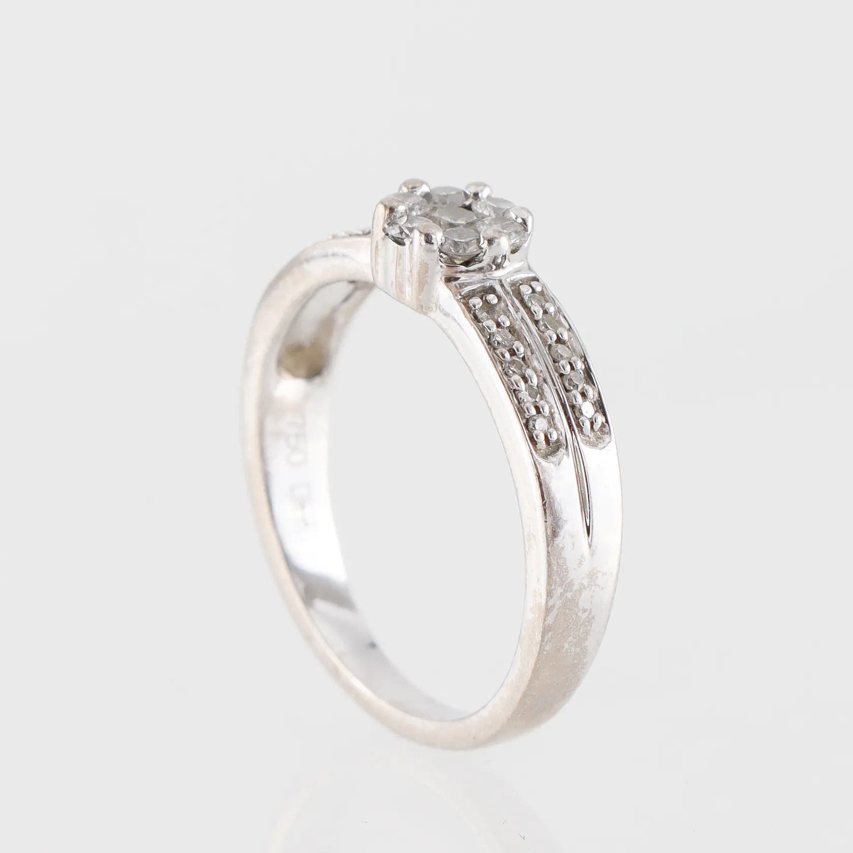 Ring vitguld med diamanter 27st totalt enligt inskription 0,25ct, stl 16 mm, bredd 2.1-5.2 mm, Guldfynd. 18k Vikt: 3,7 g.