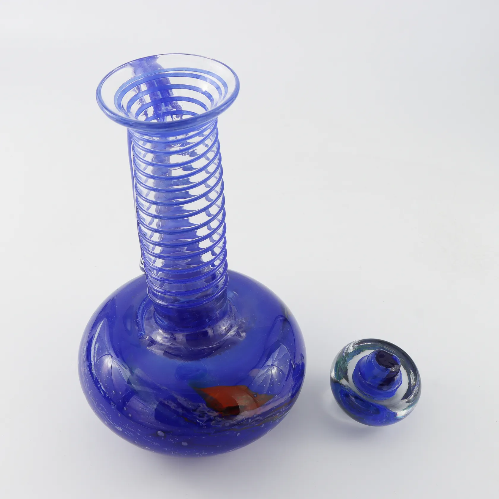 Karaff konstglas signerat ,norsk,höjd ca 26 cm. Skickas med postpaket.