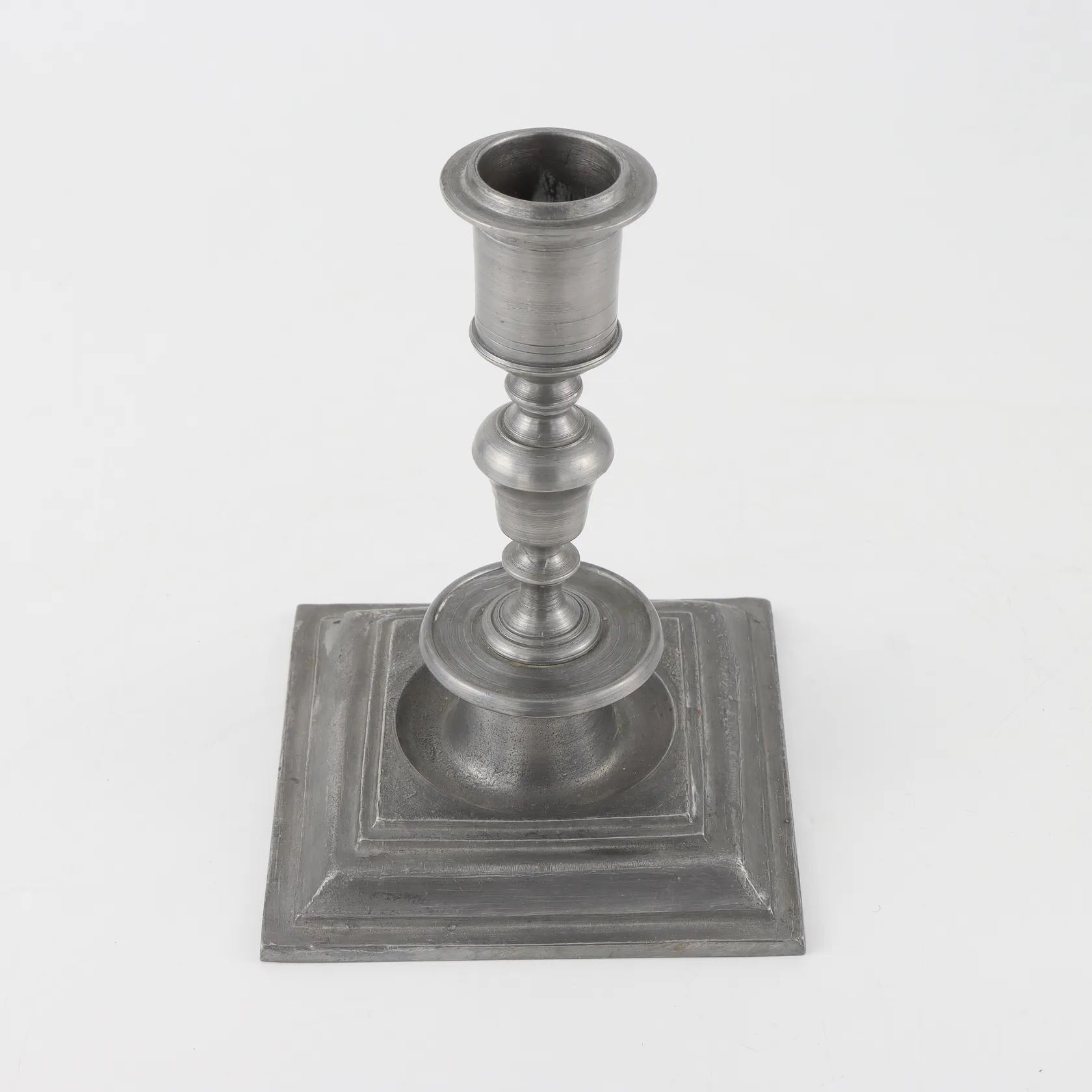 Ljusstake Barockstil Tenn , stämplad,höjd 16 cm. Skickas med paket..