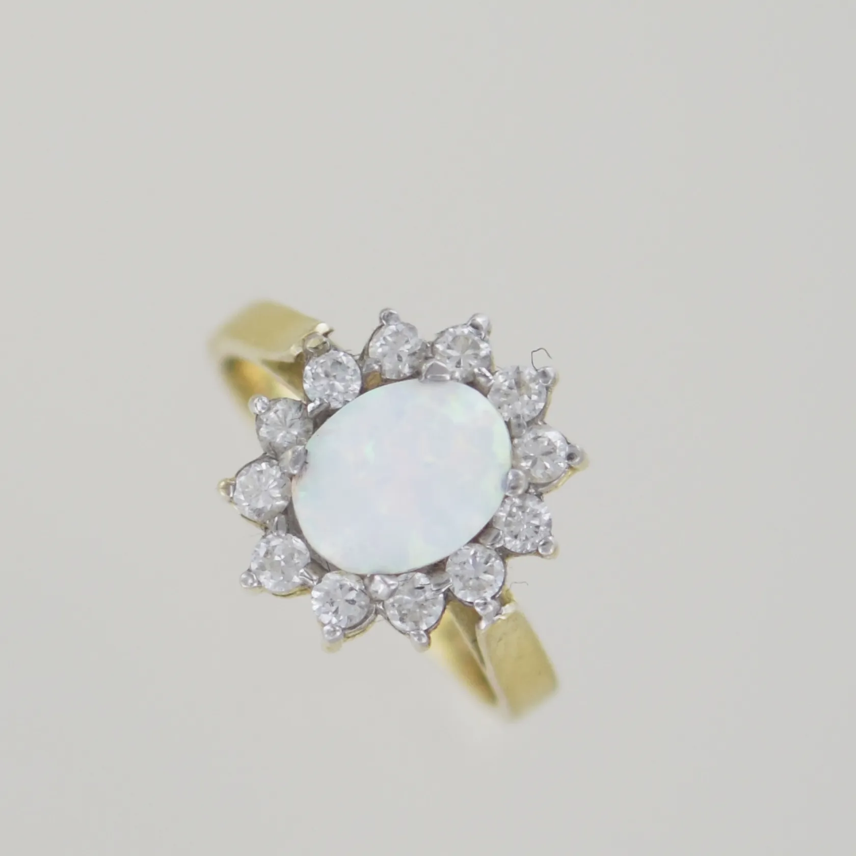 Ring med stenar, Ø 17½ mm, bredd 14x11 mm, 14K Vikt: 4,2 g.