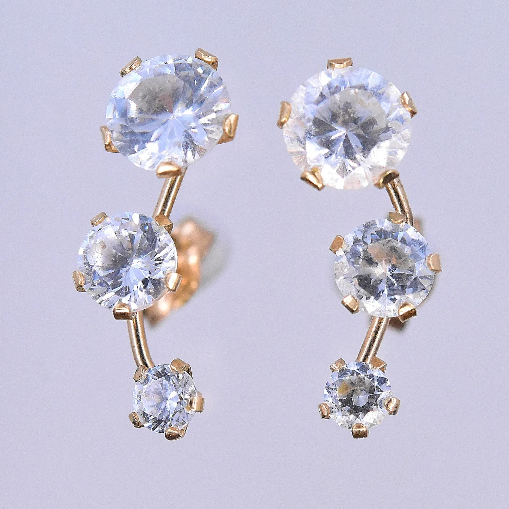 Ett par örhängen med vita stenar