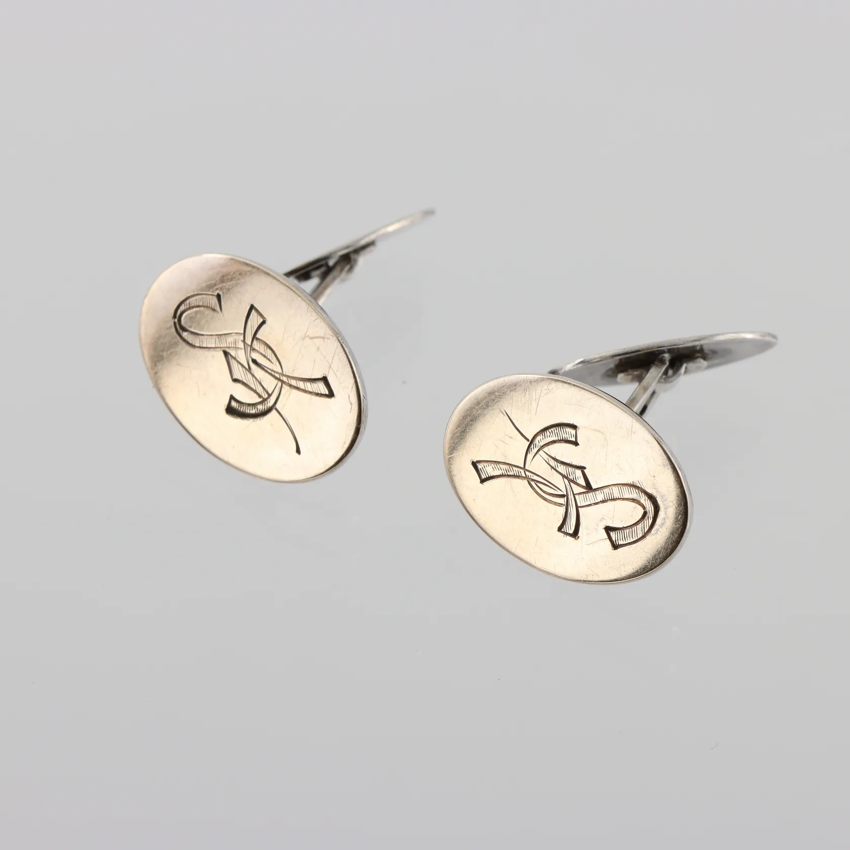 Parmanschettknappar med monogram , ovala ca 20x13,5mm, Guldvaruaktiebolaget G. Dahlgren & Co Ab Malmö 1939, silver Vikt: 7,8 g.