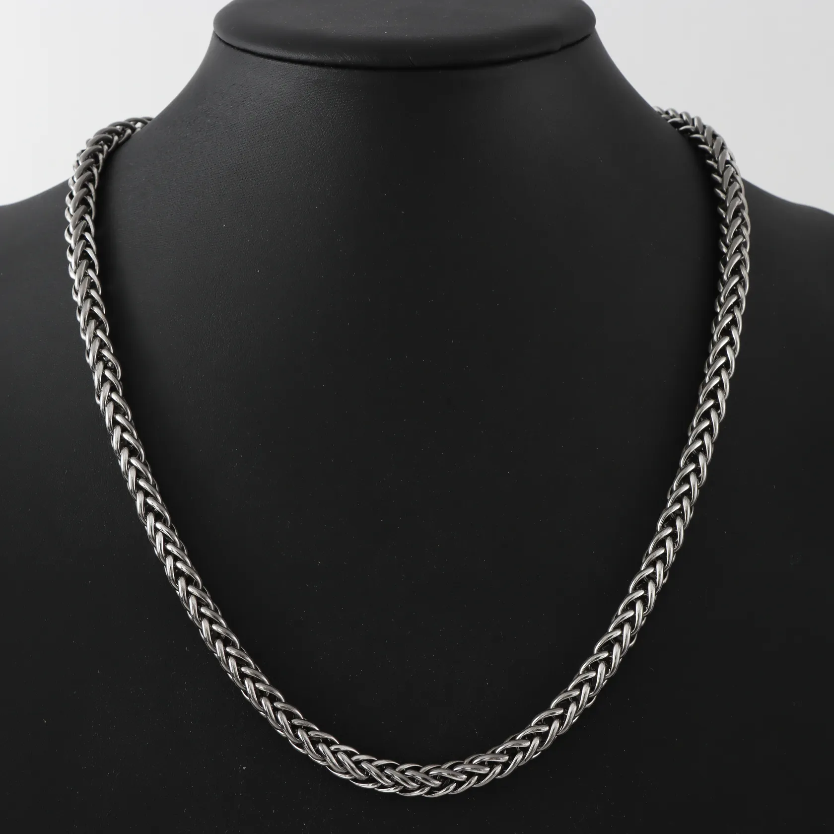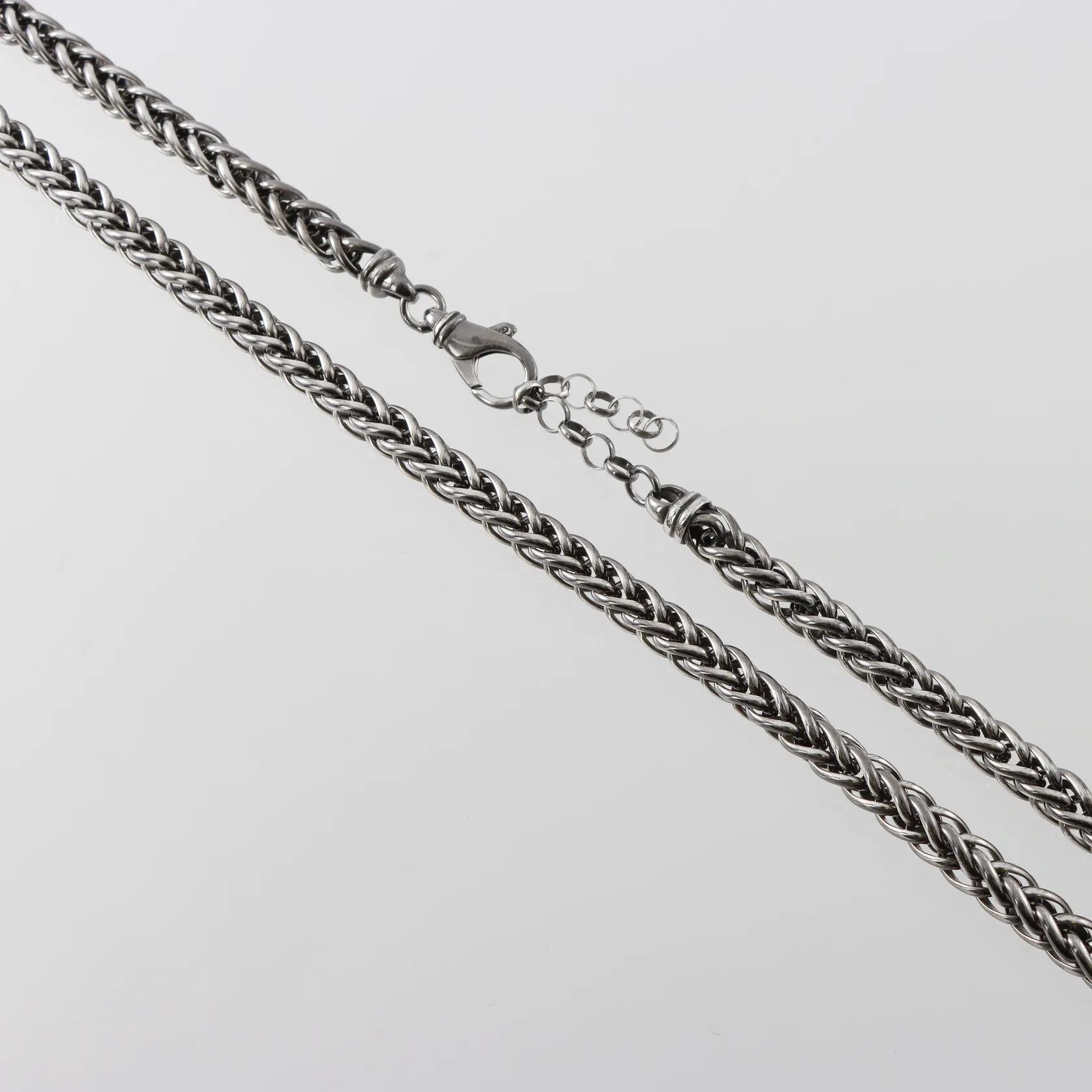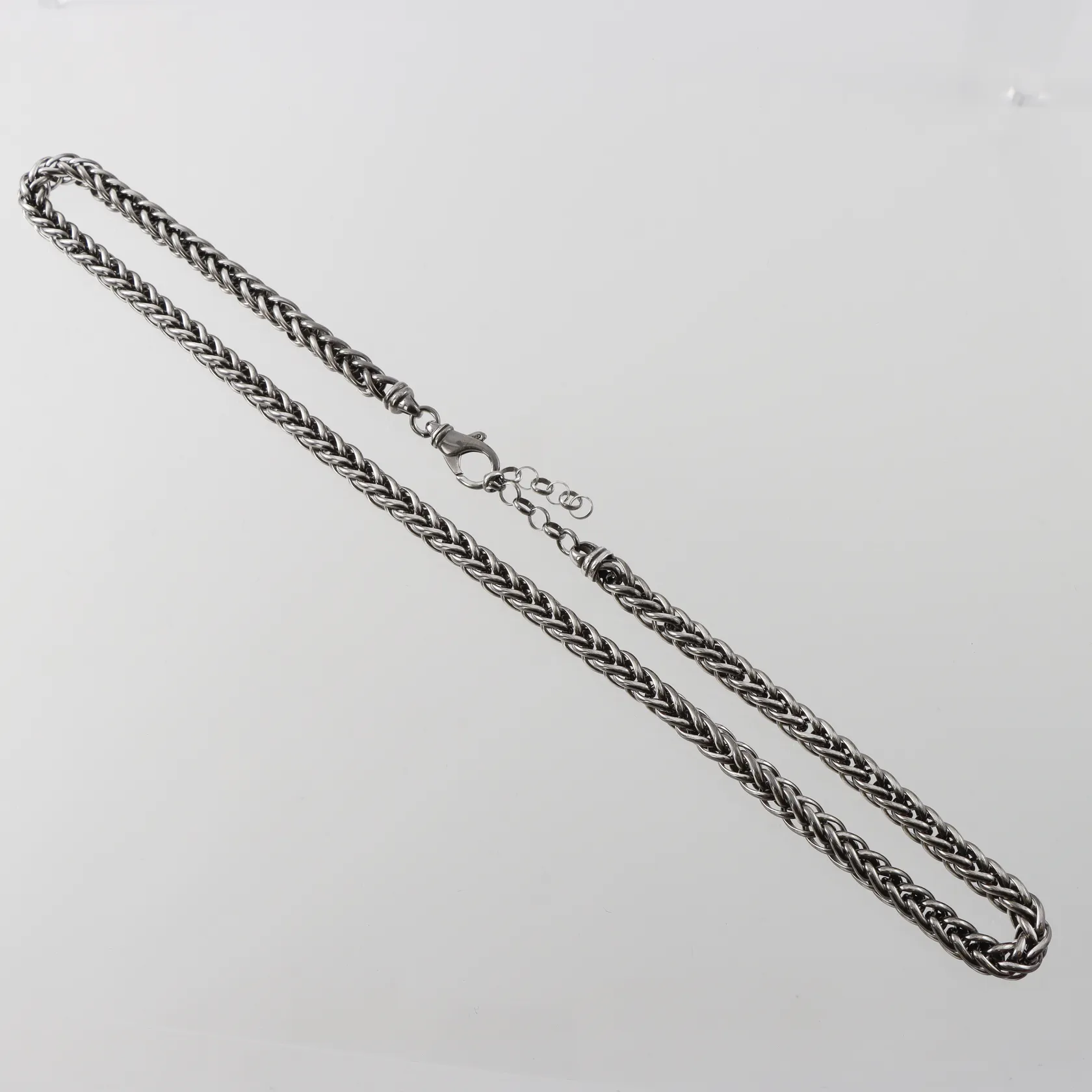 Collier oxiderat , längd 55 cm + förlängning 5 cm, bredd 7.2 mm, silver 925/1000. Vikt: 75 g.