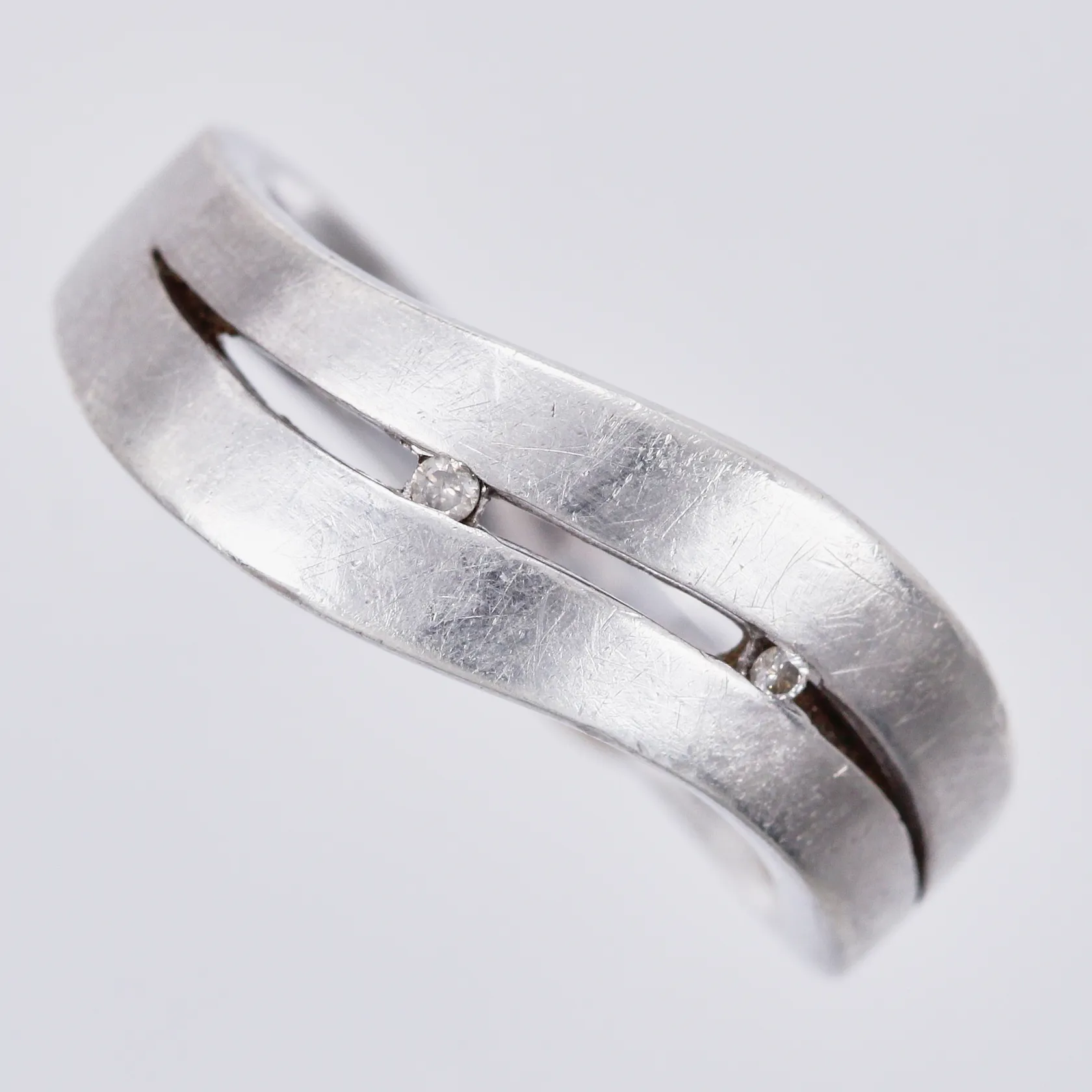 Ring med diamanter 2xca0,01ct stl: 19, 925/1000 silver Vikt: 7,1 g.