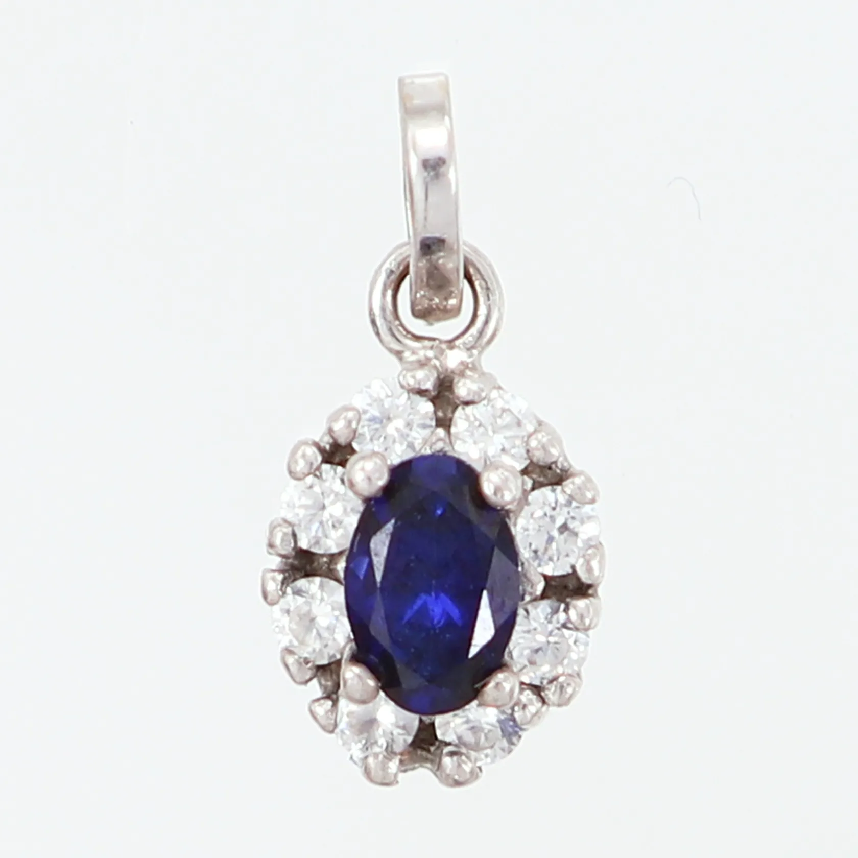 Hänge vitguld med vita stenar samt en syntetisk safir, 16x7mm, 18K Vikt: 1,6 g.