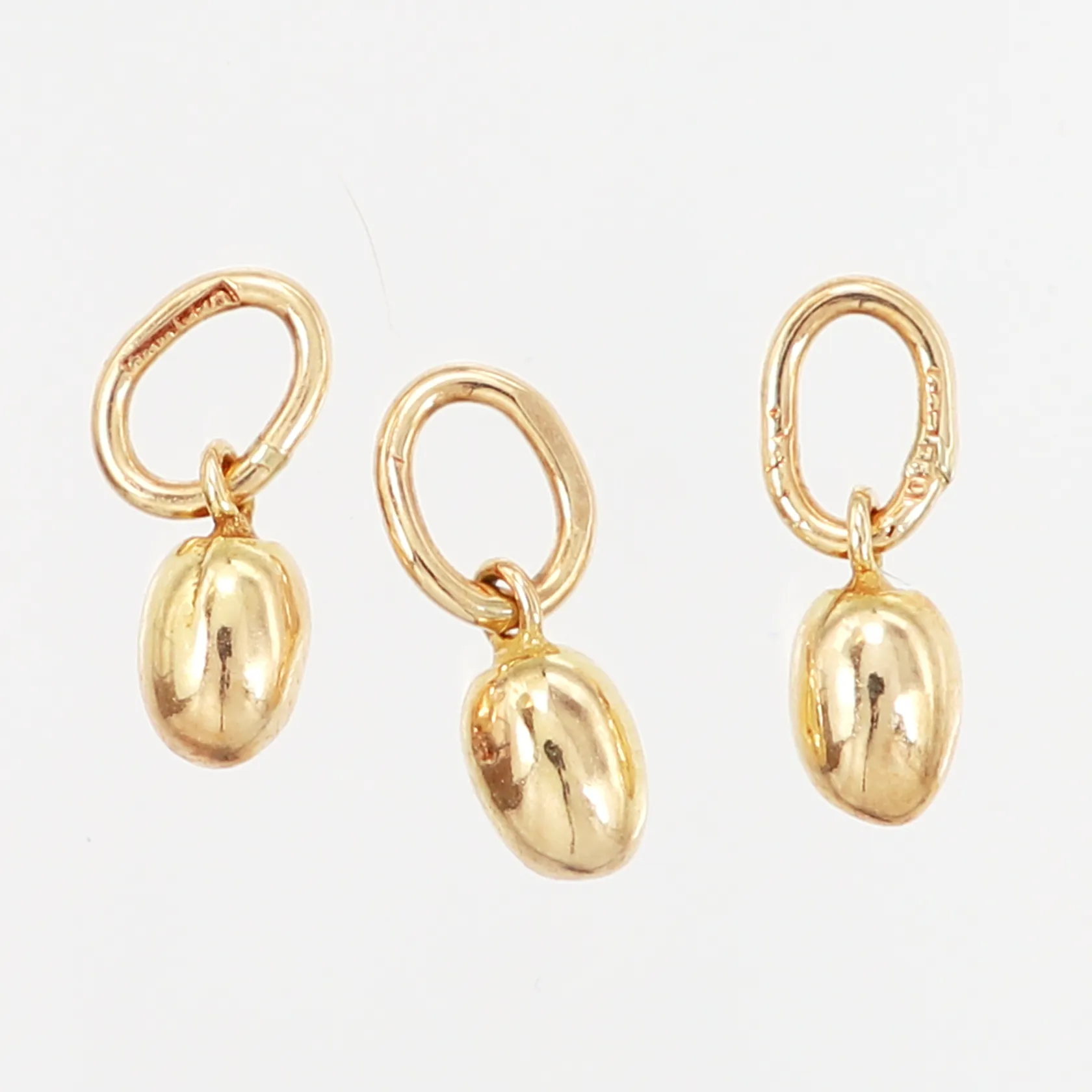 Tre äggformade hängen/berlocker, 12x4mm, 18K Vikt: 2,8 g.