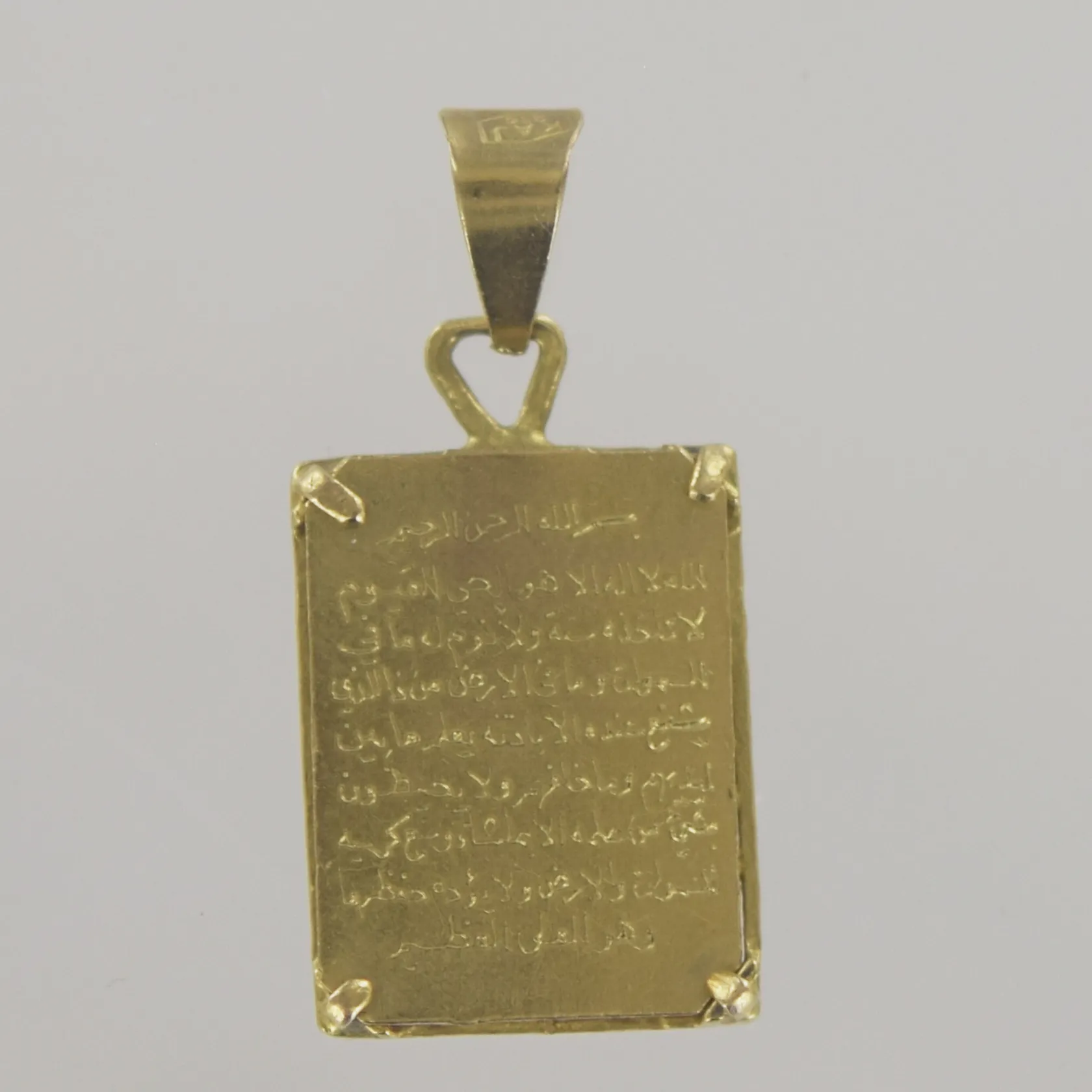 Hänge Allah/Koran, längd 3 cm, bredd 1,5 cm, 21K Vikt: 5,7 g.