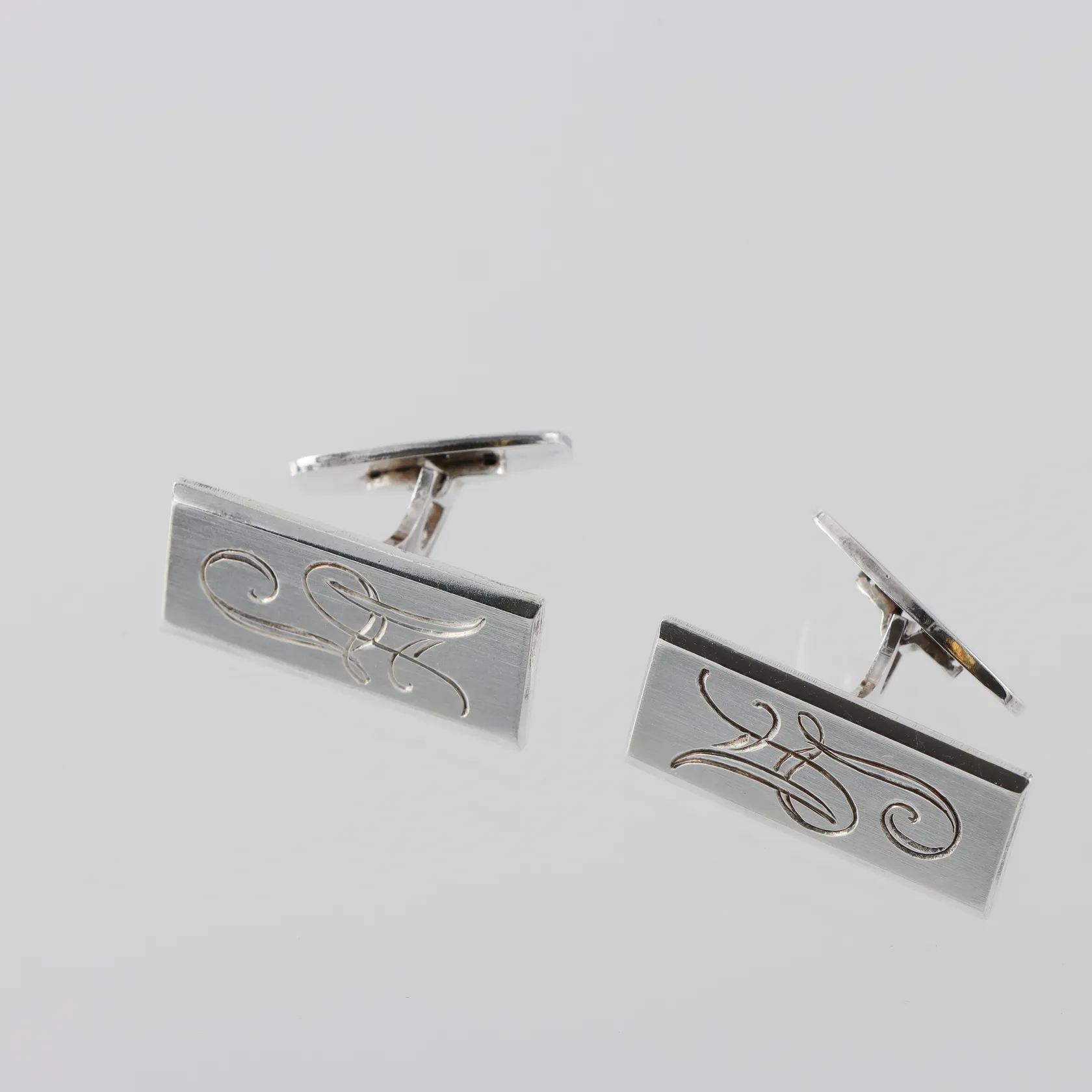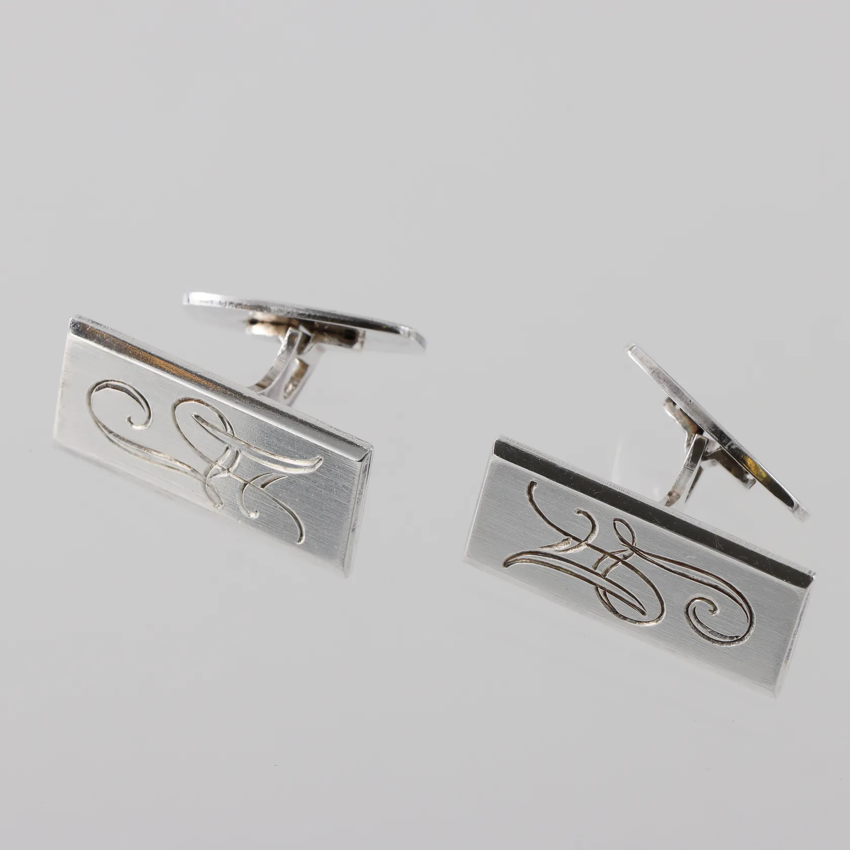 Manschettknappar paret med monogram, K&EC Göteborg 1967, ca 12x25 mm, silver. Vikt: 13,9 g.