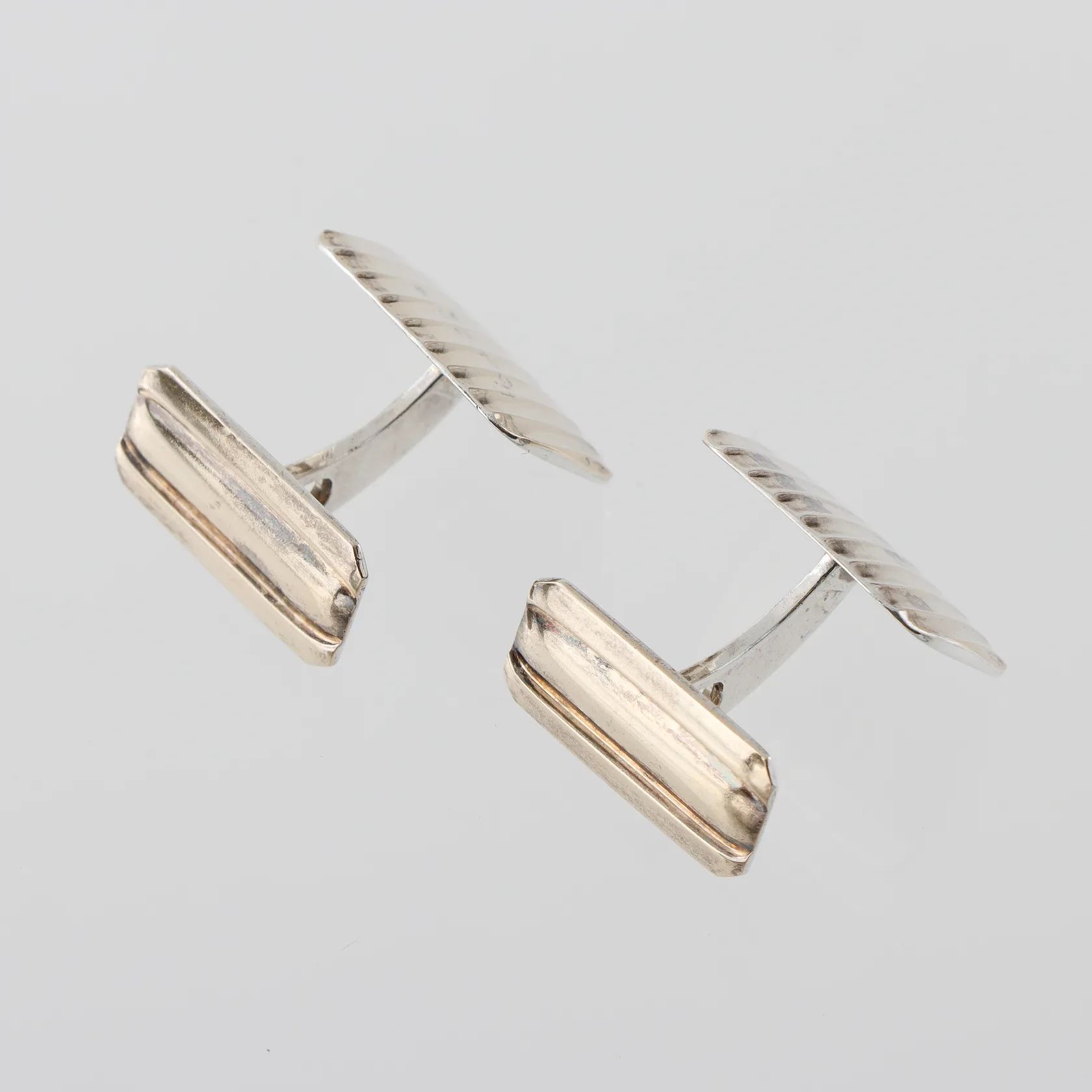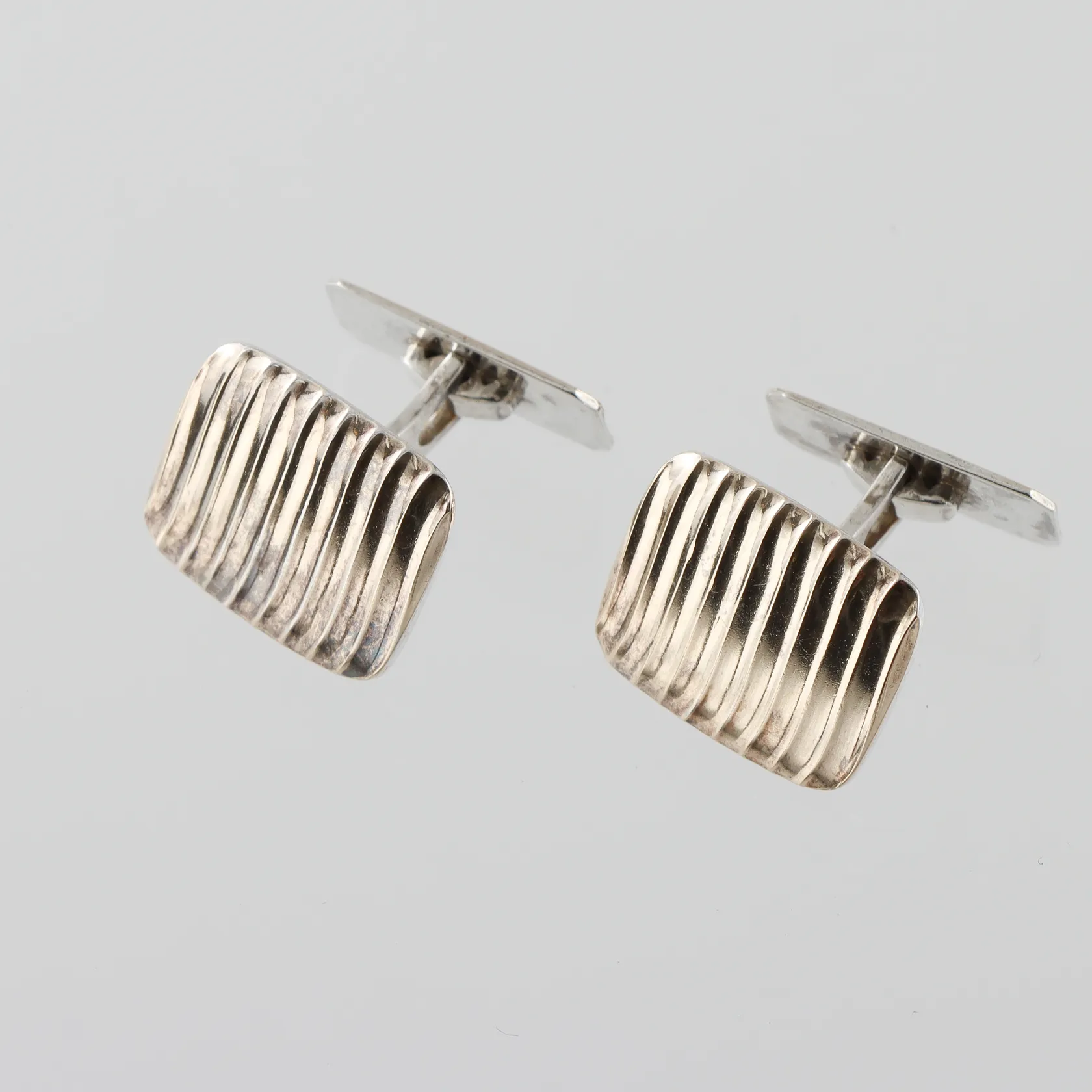 Parmanschettknappar räfflade, mått ca 17x14mm, silver Vikt: 8,4 g.