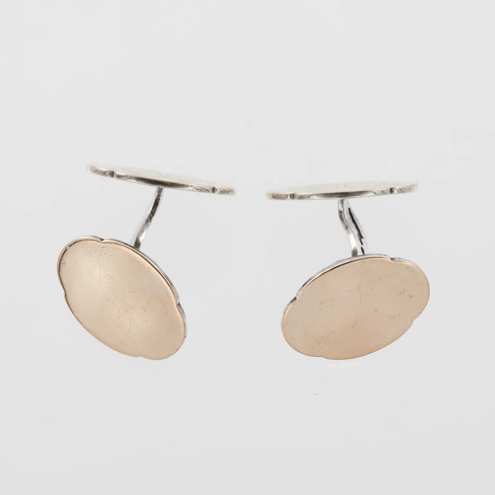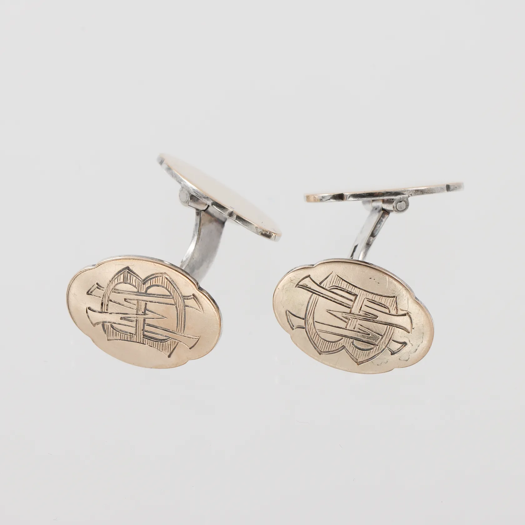 Parmanschettknappar med monogram BM eller MB, ovala ca 18x13mm, Guldvaruaktiebolaget G. Dahlgren & Co Ab Malmö 1939, silver Vikt: 9,9 g.