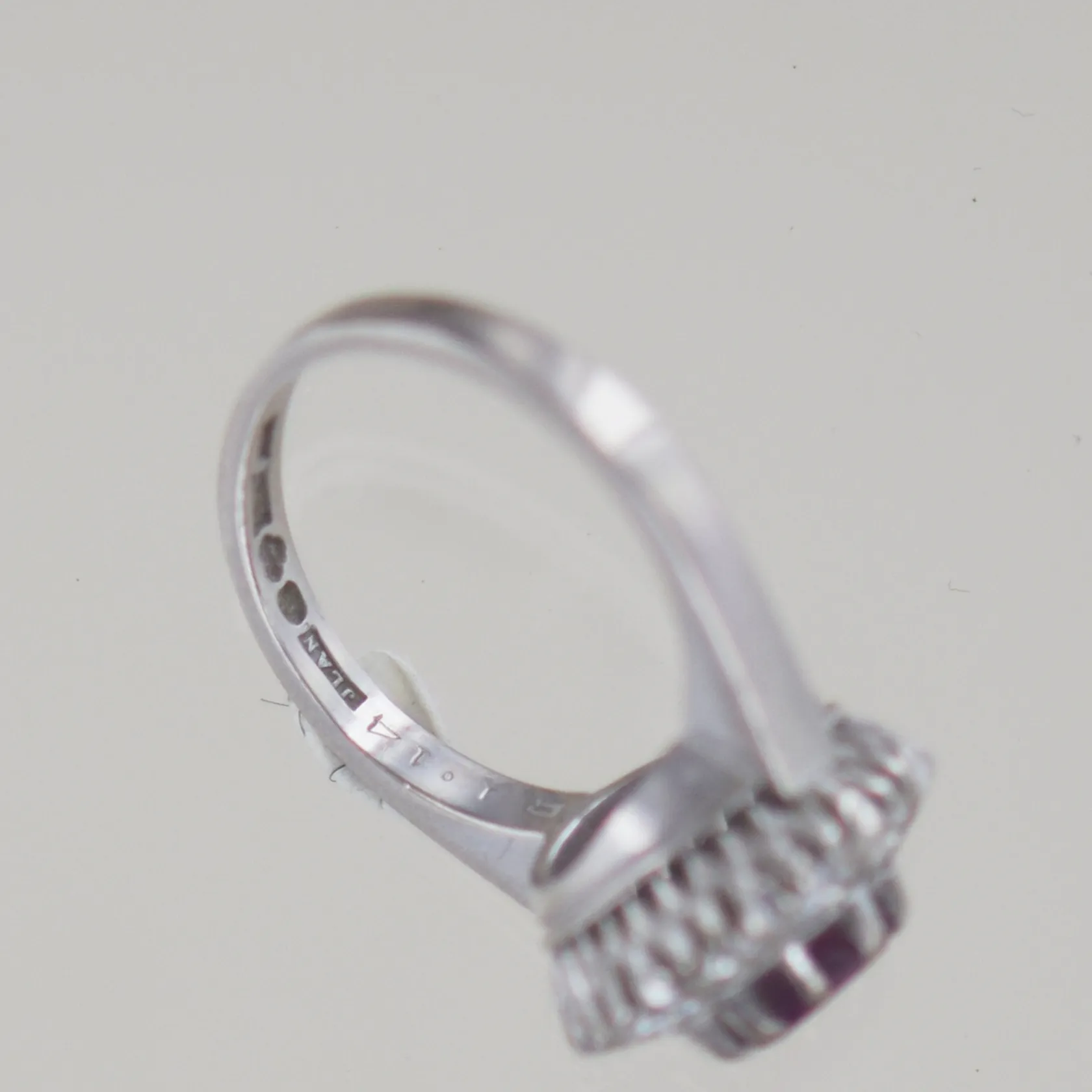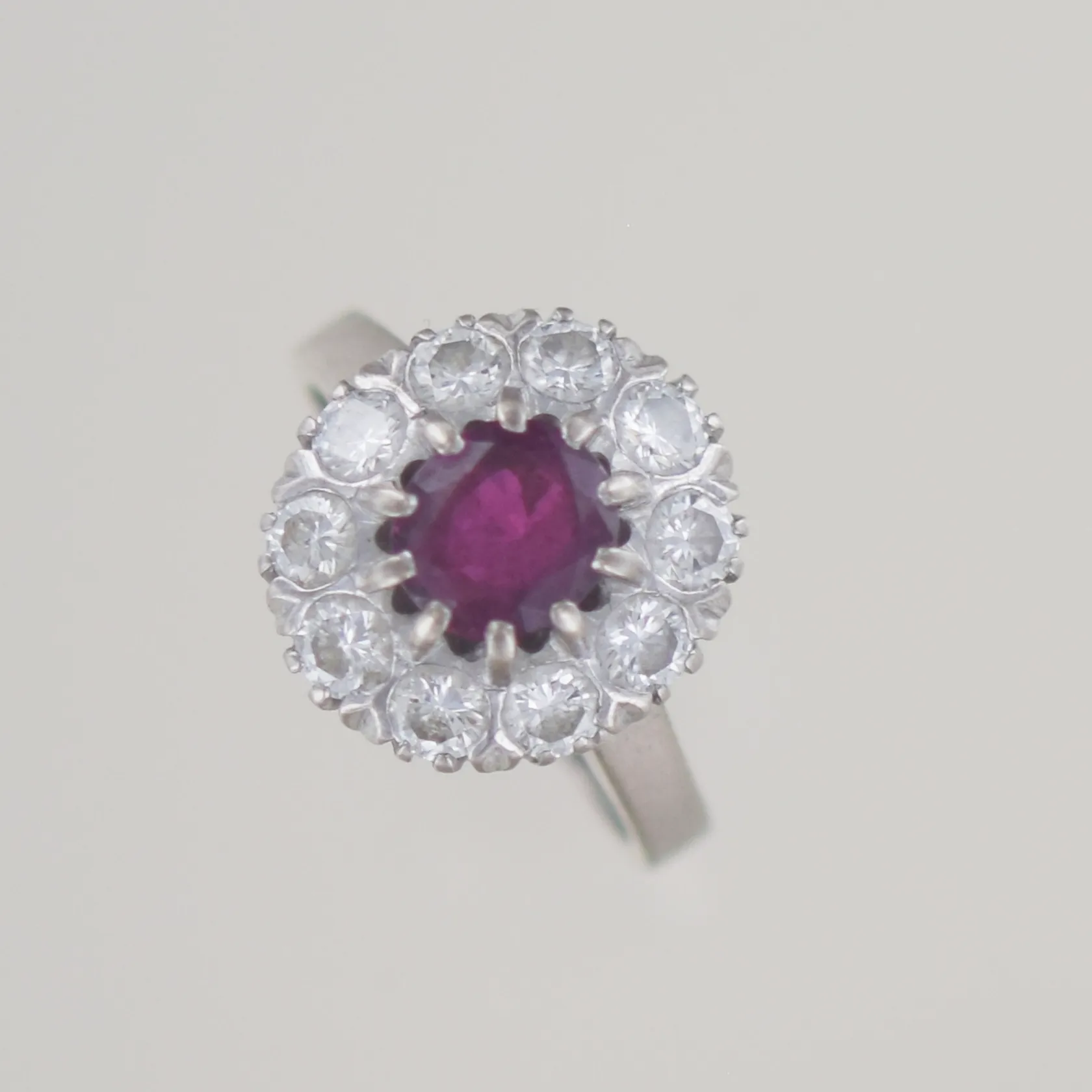 Carmoséring med rubin 1,14ct + diamanter 0,13ct x 10 tot 1,13 ct, Ø 17½ mm, 18K, tillverkad av Evert Lindberg, juvelateljén. Nyanskaffningsvärde ca 75 000kr. Vikt: 6,3 g.