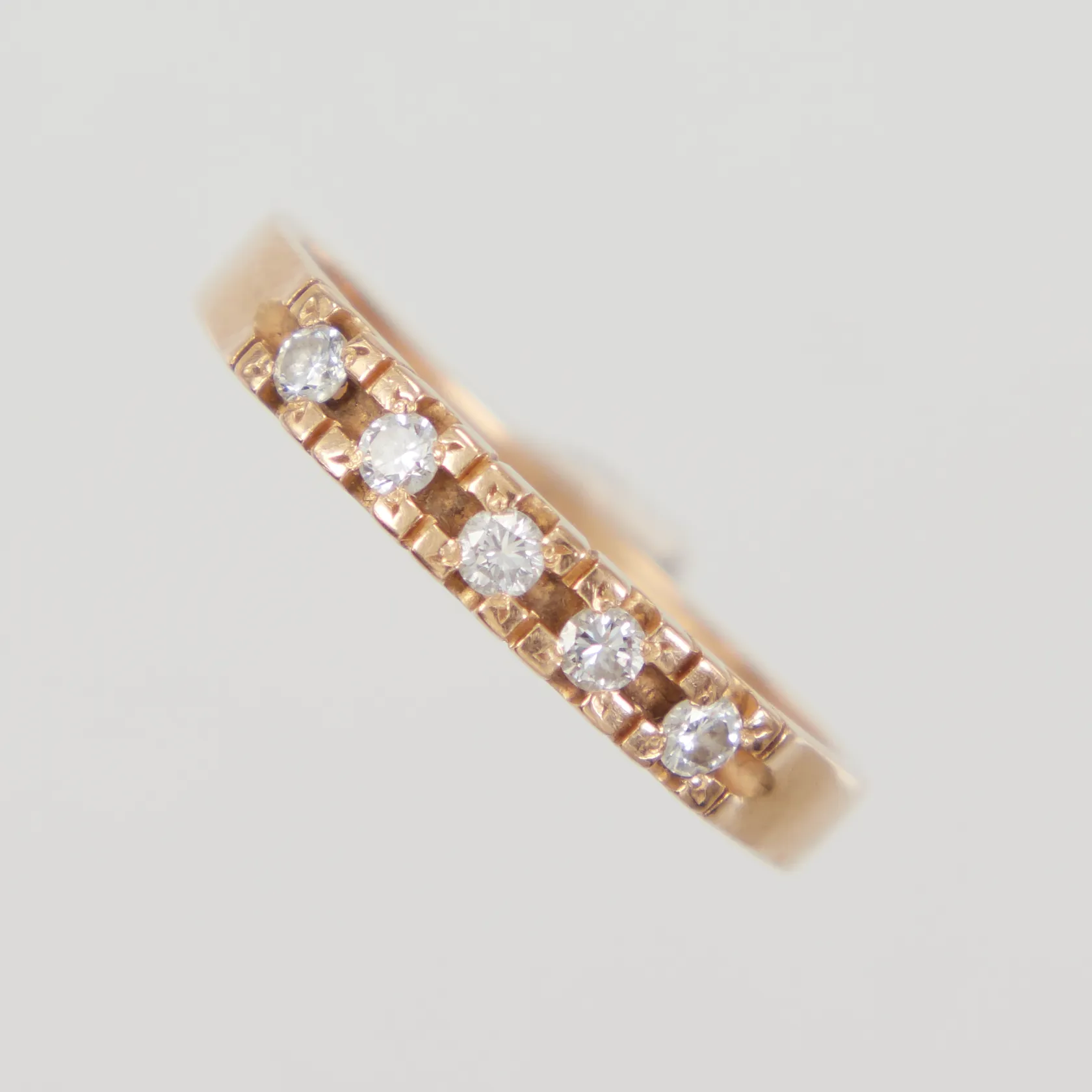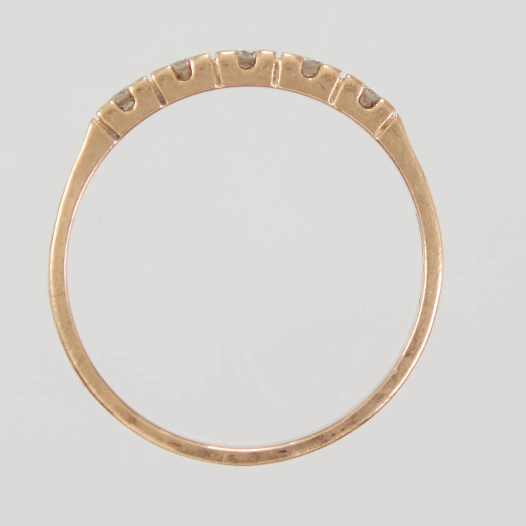Ring stl 18½, bredd 3,2mm, diamanter 5x ca 0,04ct, spricka i skenan, 18K Vikt: 3,3 g.