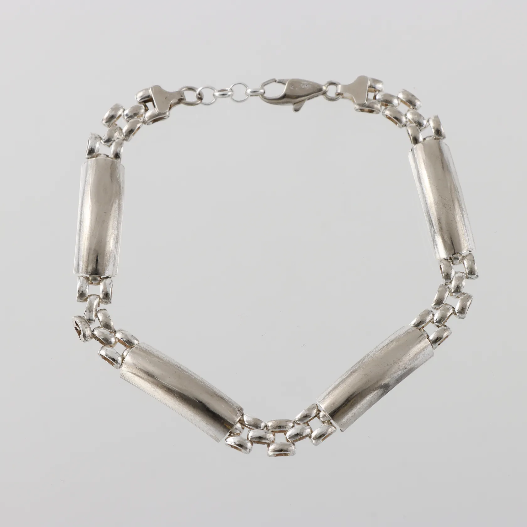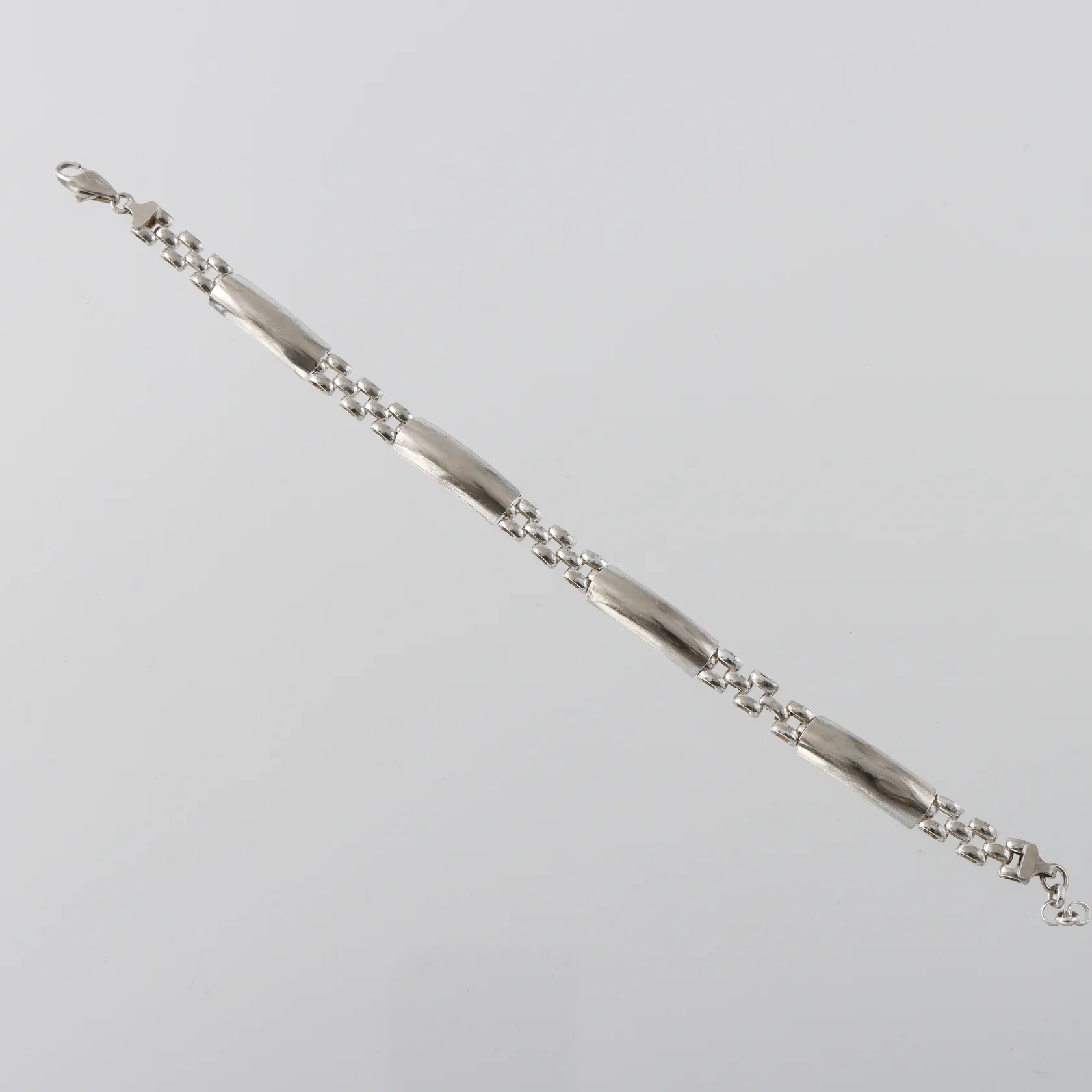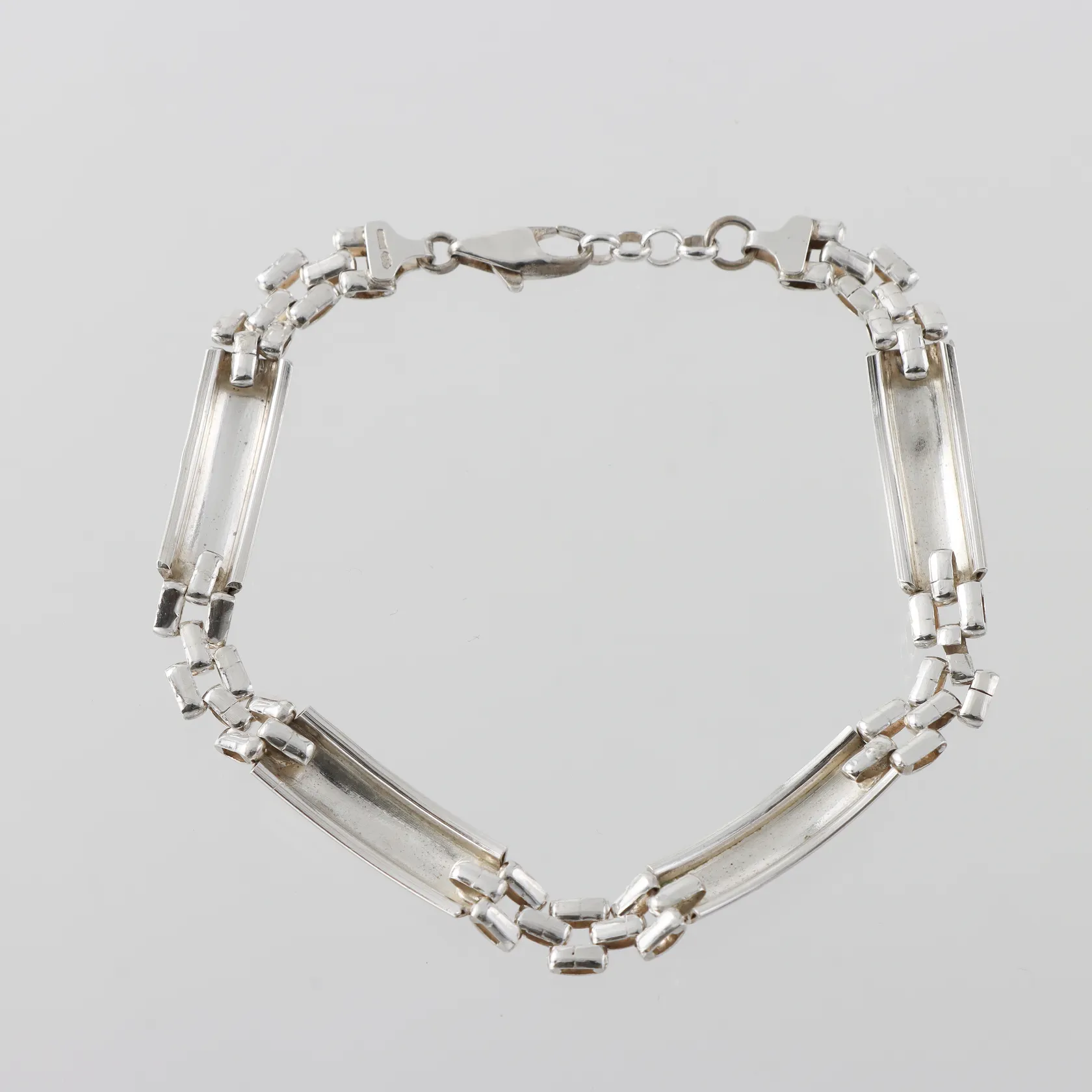 Armband med en ojämnhet på en av de rundade brickorna, längd 21cm, bredd 7,6mm, silver Vikt: 10,1 g.