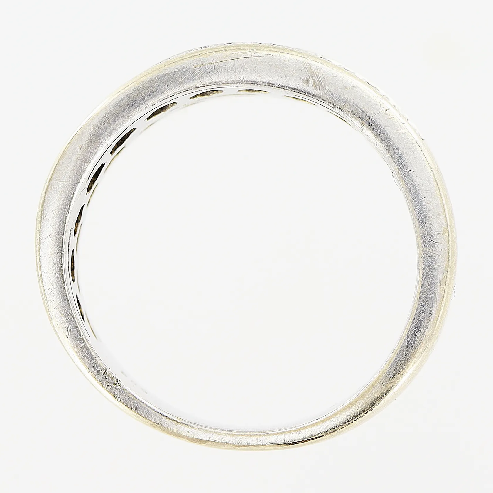 Ring diamanter 16 x ca 0,005ct 1 x ca 0,03ct, stl 16¾, bredd 3,5-7,5mm, vit/gulguld, 14K Vikt: 5,5 g.