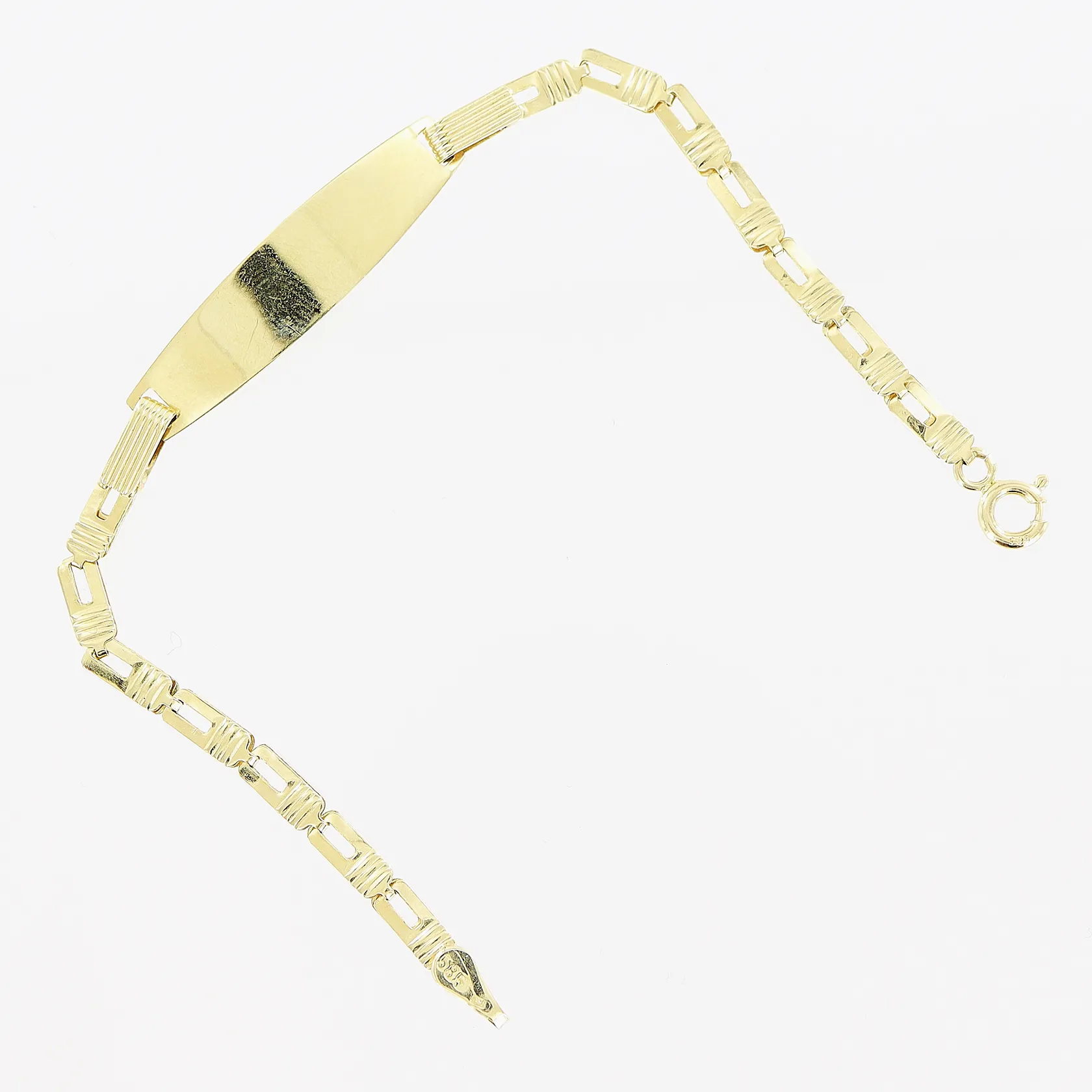 Armband med platta 14,5cm, bredd 2,5-6,5mm, 14K Vikt: 2,4 g.