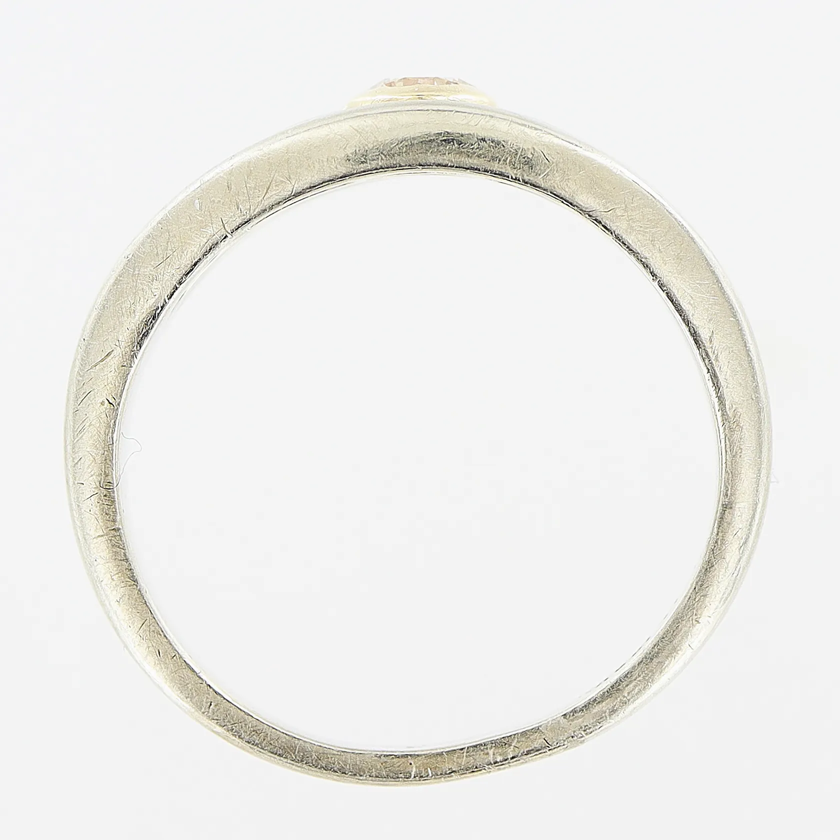 Ring diamant 0,10ct stl 15¼, bredd 1,5-6,5mm, vitguld, slitage18K Vikt: 2,9 g.