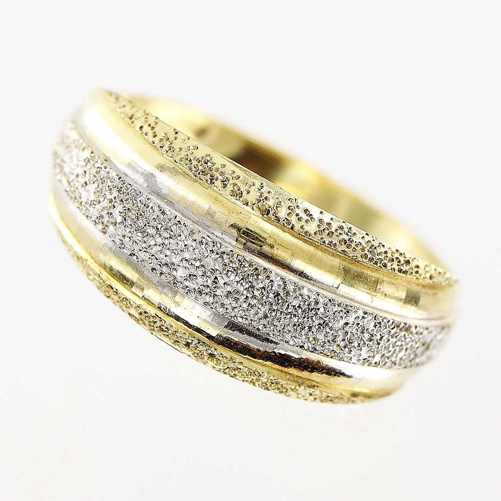 Ring, stl 16¾, bredd 3-8mm, vit/gulguld, 14K. Vikt: 1,3 g.