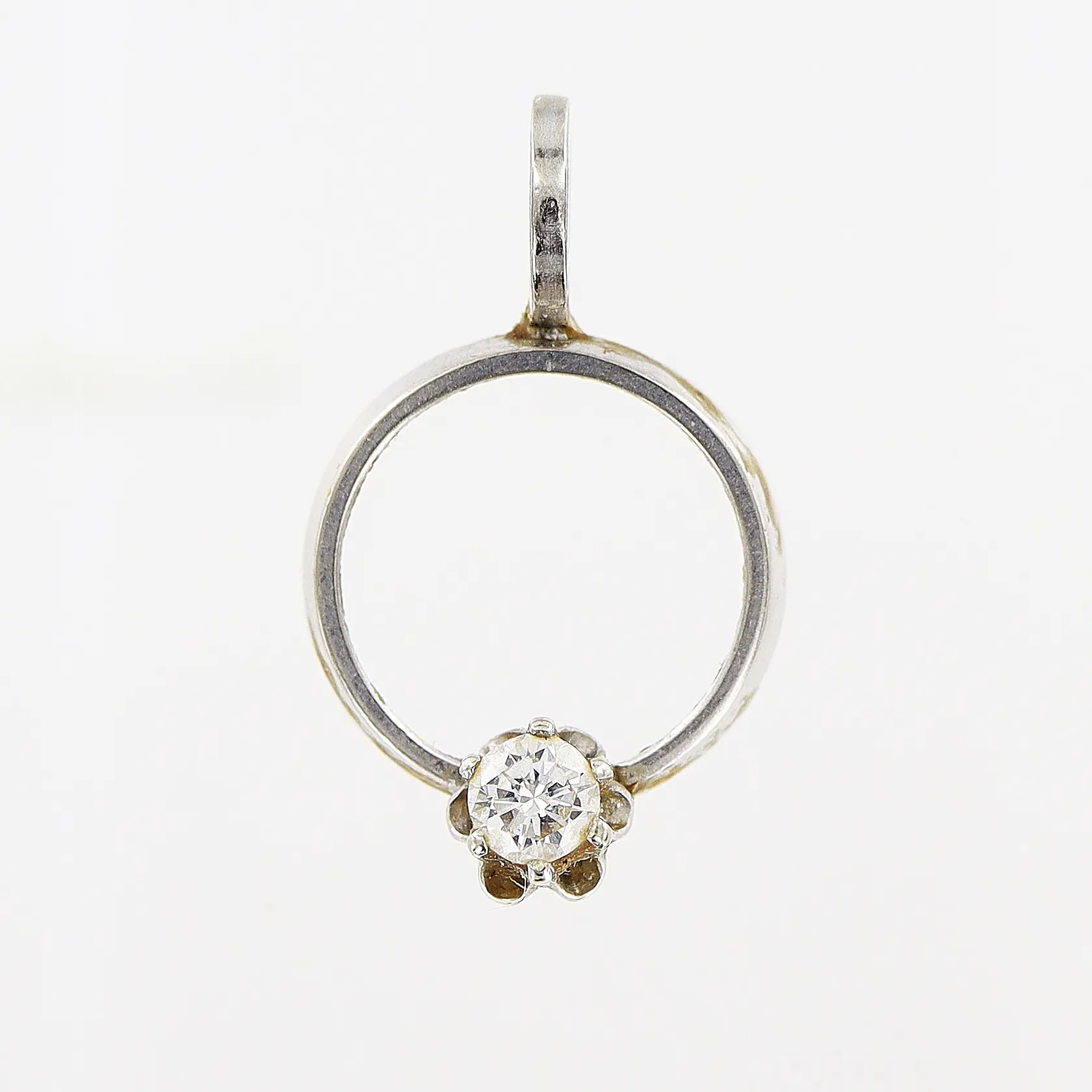 Hänge, diamant ca 0,10ct, 20x12mm, vitguld, slitage på klor, 18K. Vikt: 1,1 g.