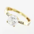 Ring, vita stenar, stl 16, bredd 2-6,5mm, skev skena, 14K. Vikt: 1,8 g.